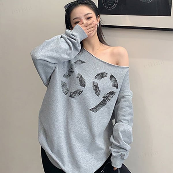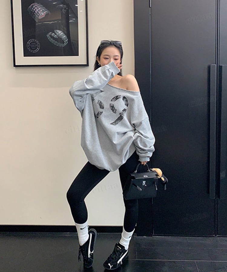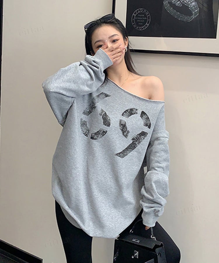 ★予約★D-933 2026新作♡69かすれロゴオフショルダー長袖Tシャツ グレー