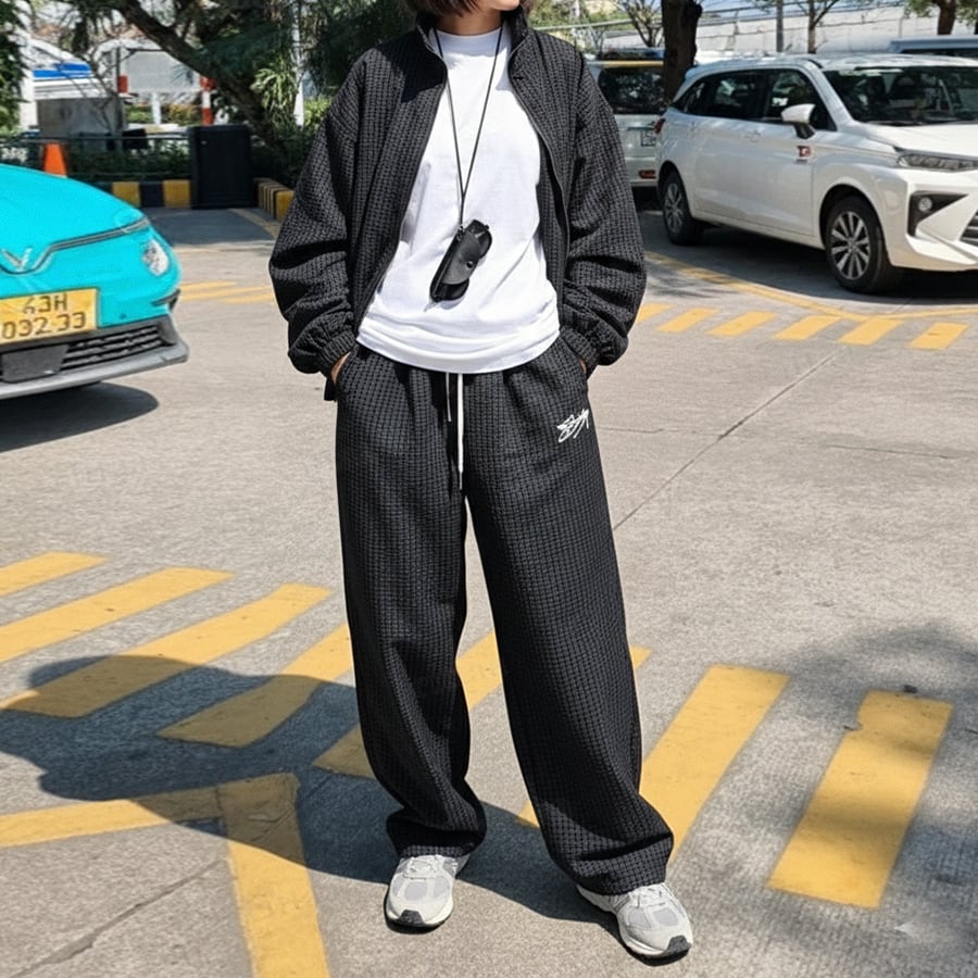 合わせやすいデザインで着回し力も抜群。同シリーズのウインドブレーカーとセットアップでの着用もおすすめ。統一感のある旬コーデが楽しめます。