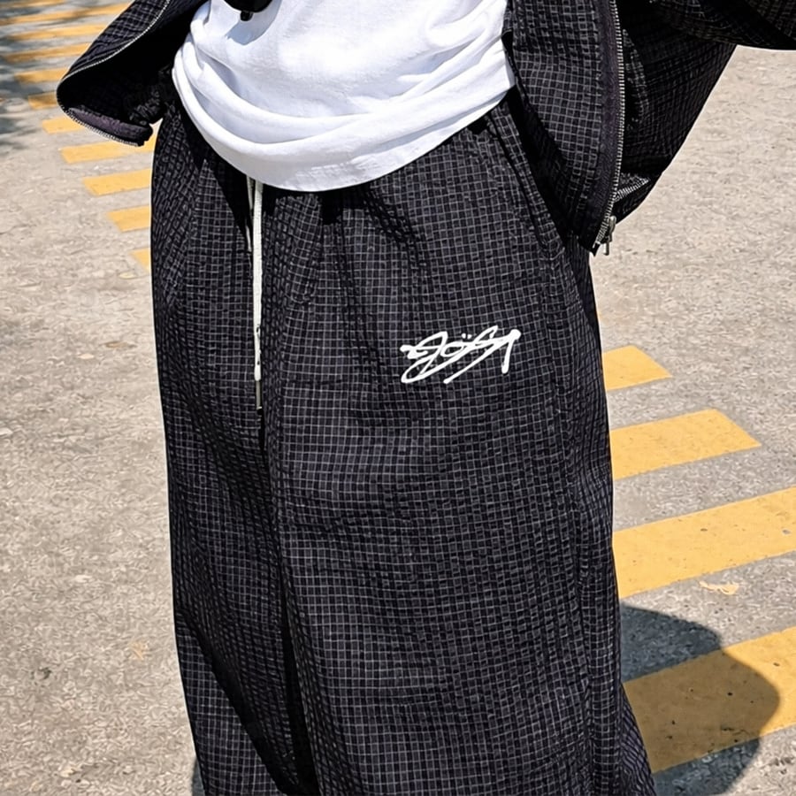 Y-4802-1 2026春新作♡【セットアップ可能】aosロゴナイロンワイドパンツ ブラック 0225