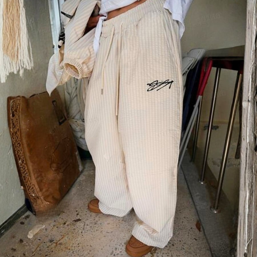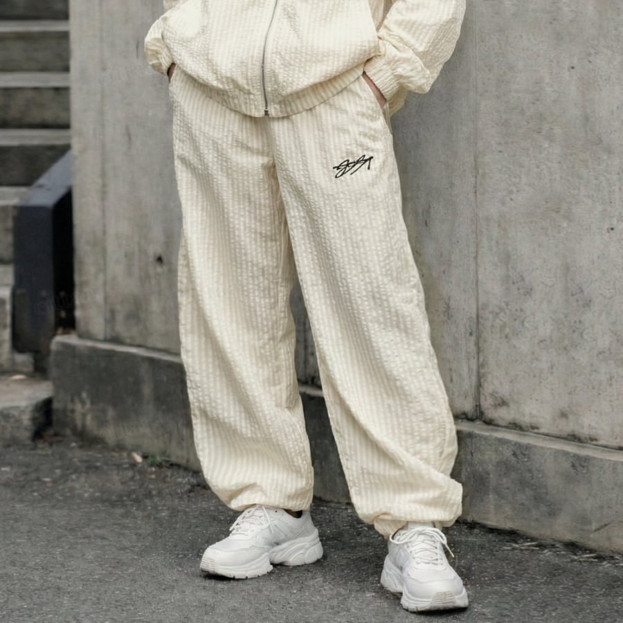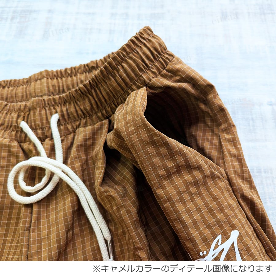 フロントポケット部分に入った筆記体ロゴがアクセントのナイロンパンツ。スポーティーなムード漂うデザインで、シンプルなトップスと合わせるだけで今っぽいストリートコーデが完成します。
