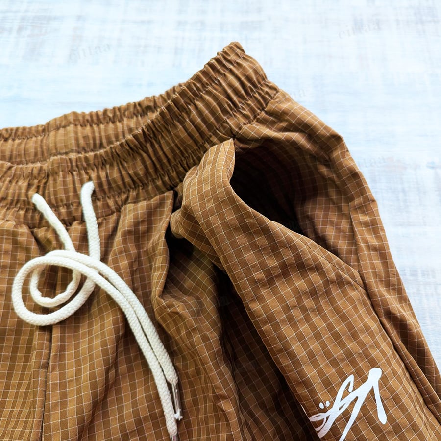 フロントポケット部分に入った筆記体ロゴがアクセントのナイロンパンツ。スポーティーなムード漂うデザインで、シンプルなトップスと合わせるだけで今っぽいストリートコーデが完成します。