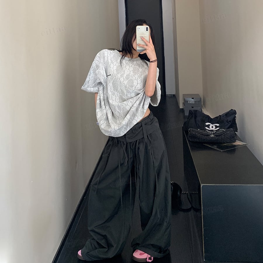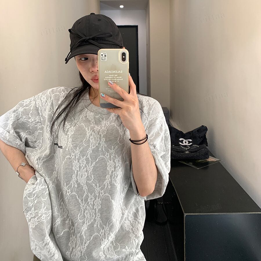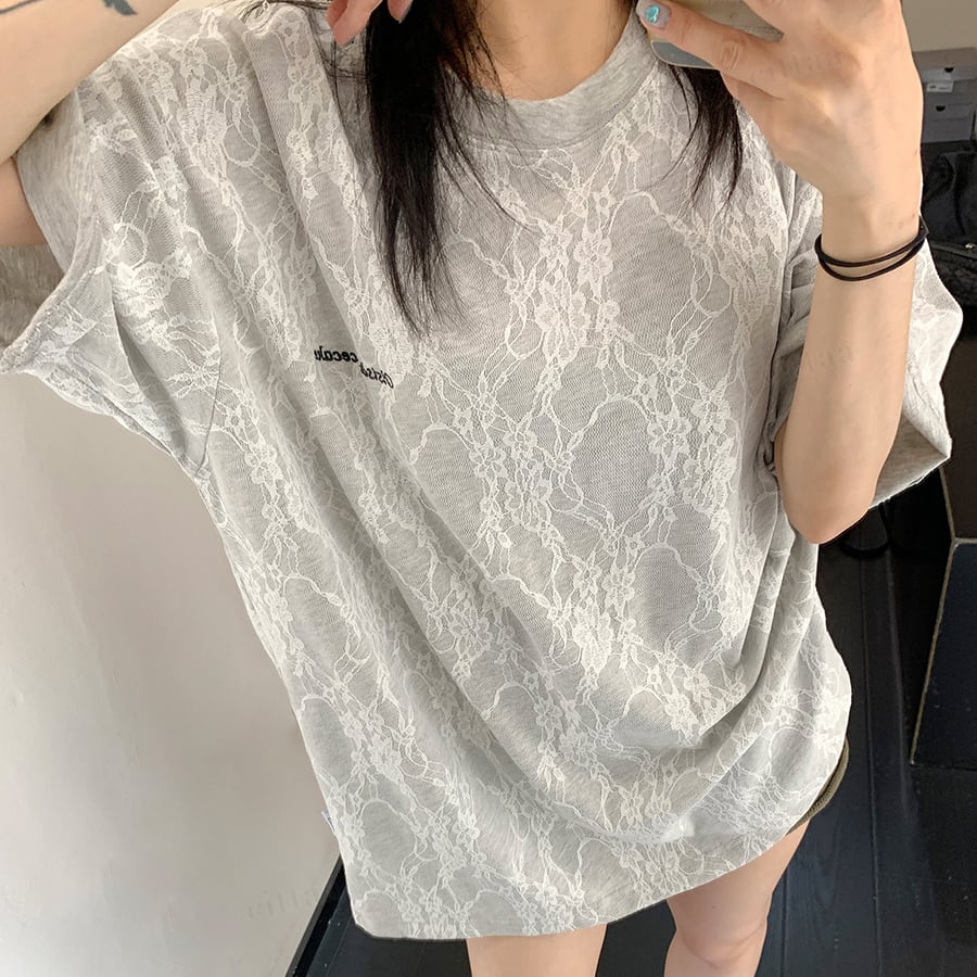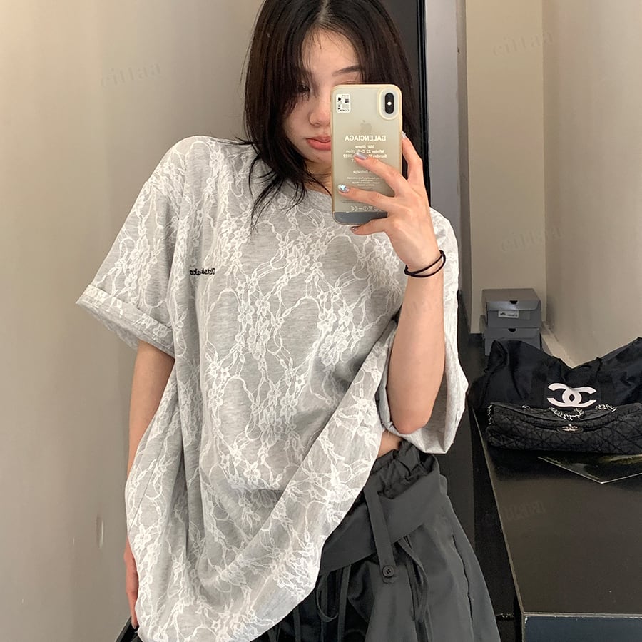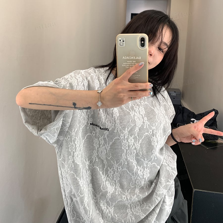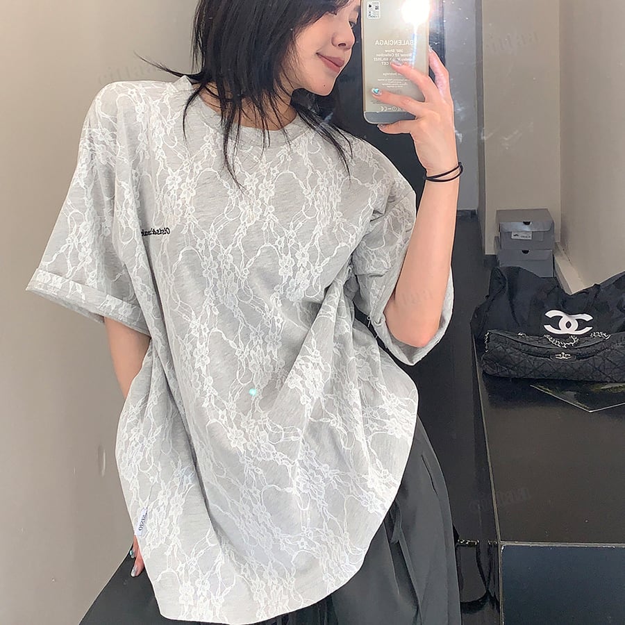 ★予約★D-939 2026新作♡Oisis花柄レース半袖Tシャツ グレー