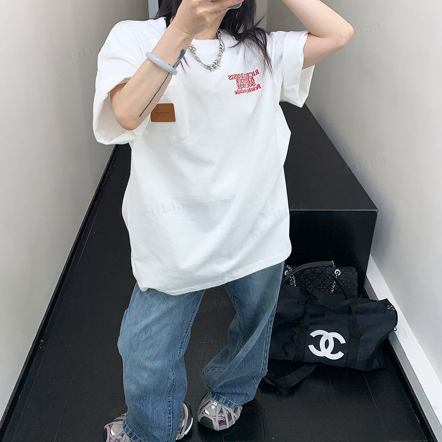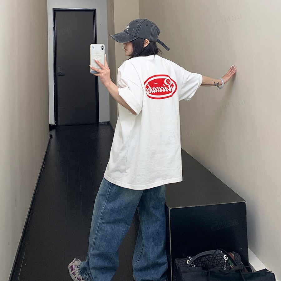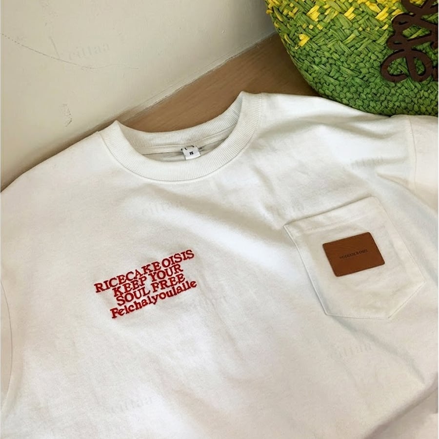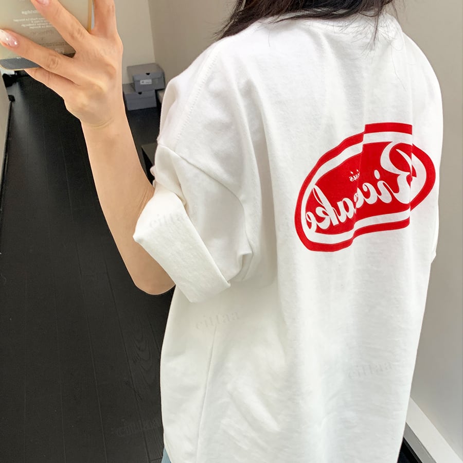 ★予約★D-941 2026春新作♡Ricecakeラベル付きレッドロゴ半袖Tシャツ ホワイト