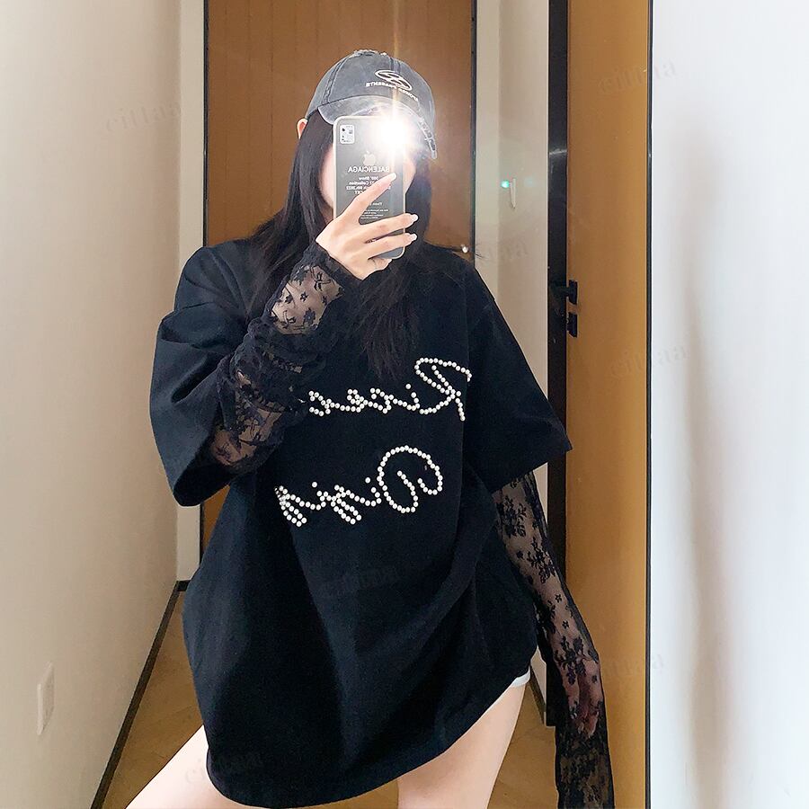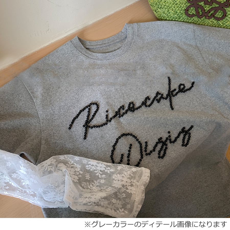 ★予約★D-946 2026春新作♡RicecakeビーズロゴレースレイヤードデザインTシャツ ブラック