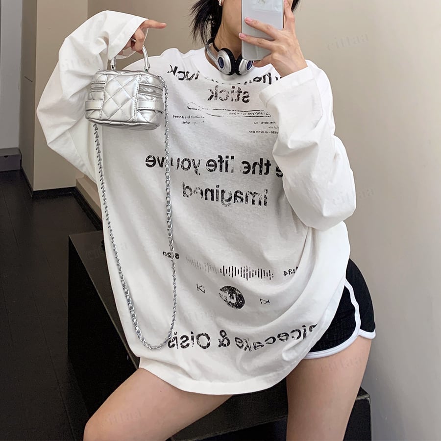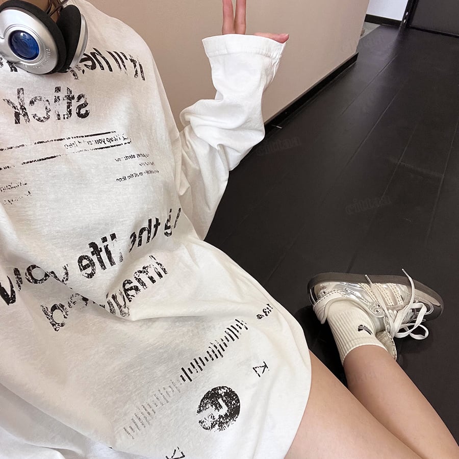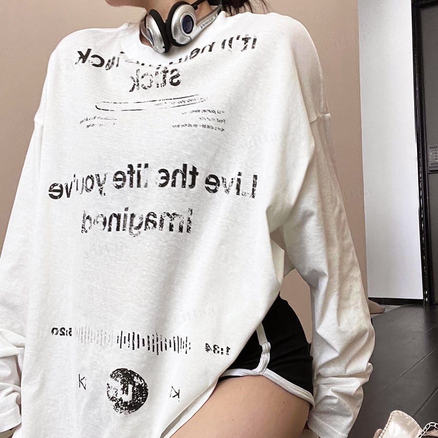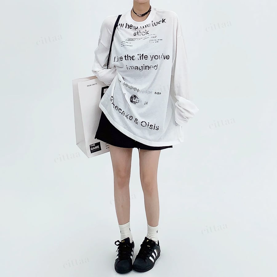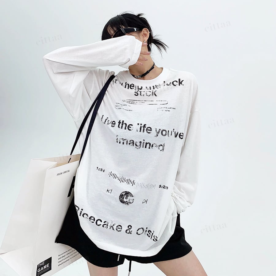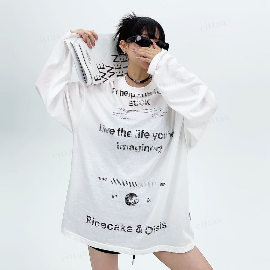 ★予約★D-957 2026春新作♡Ricecakeダメージプリント薄手長袖Tシャツ ホワイト
