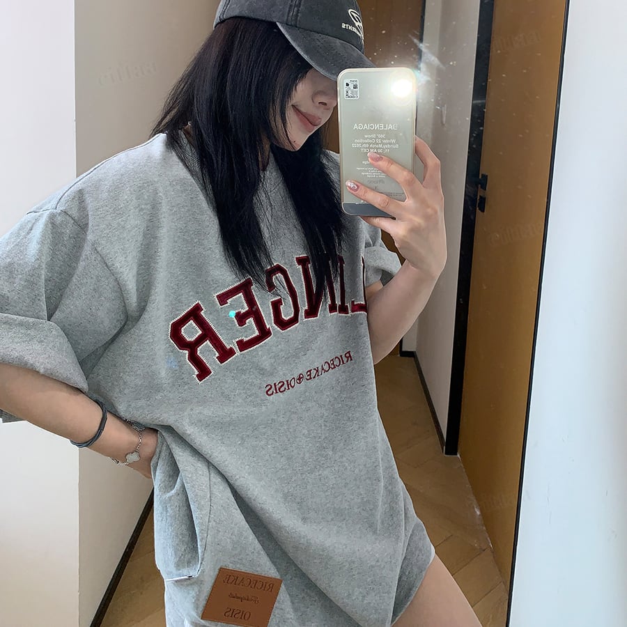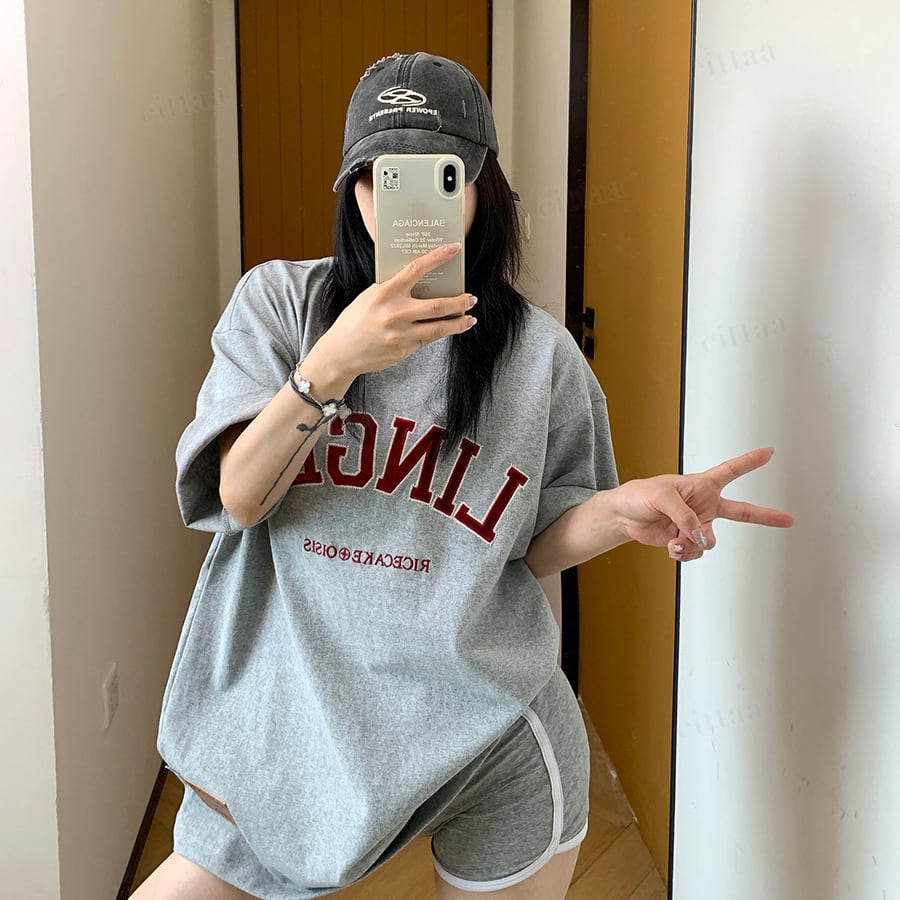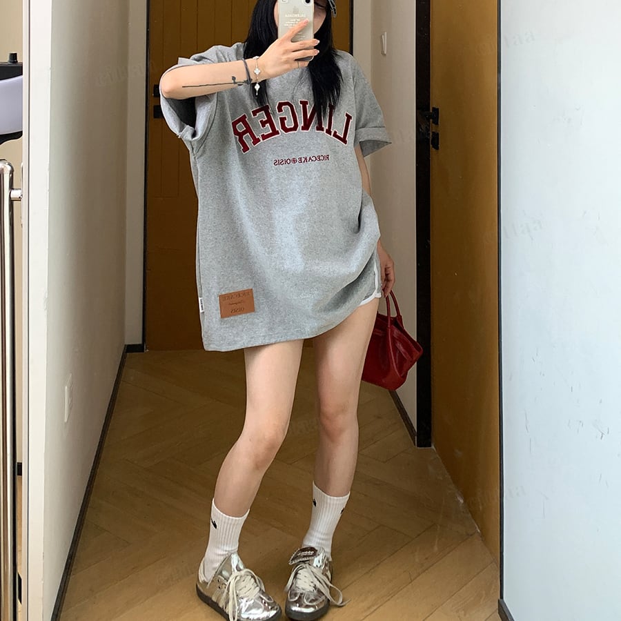 ★予約★D-958 2026春新作♡LINGERベルベットロゴ半袖Tシャツ グレー