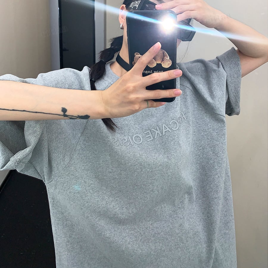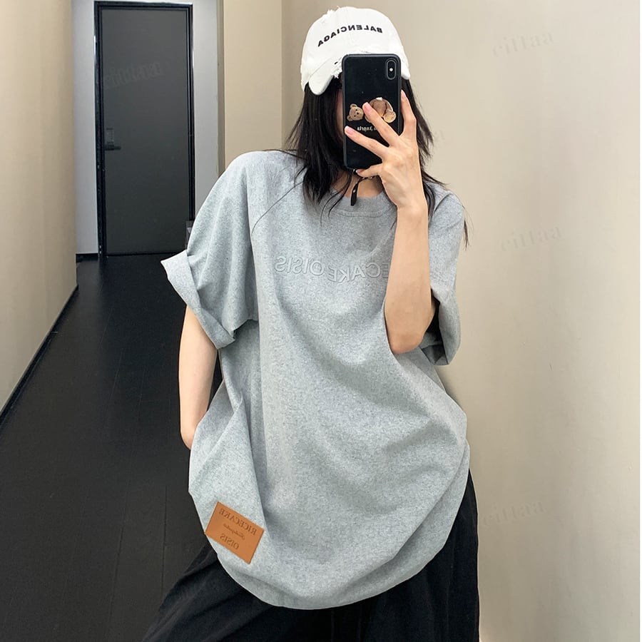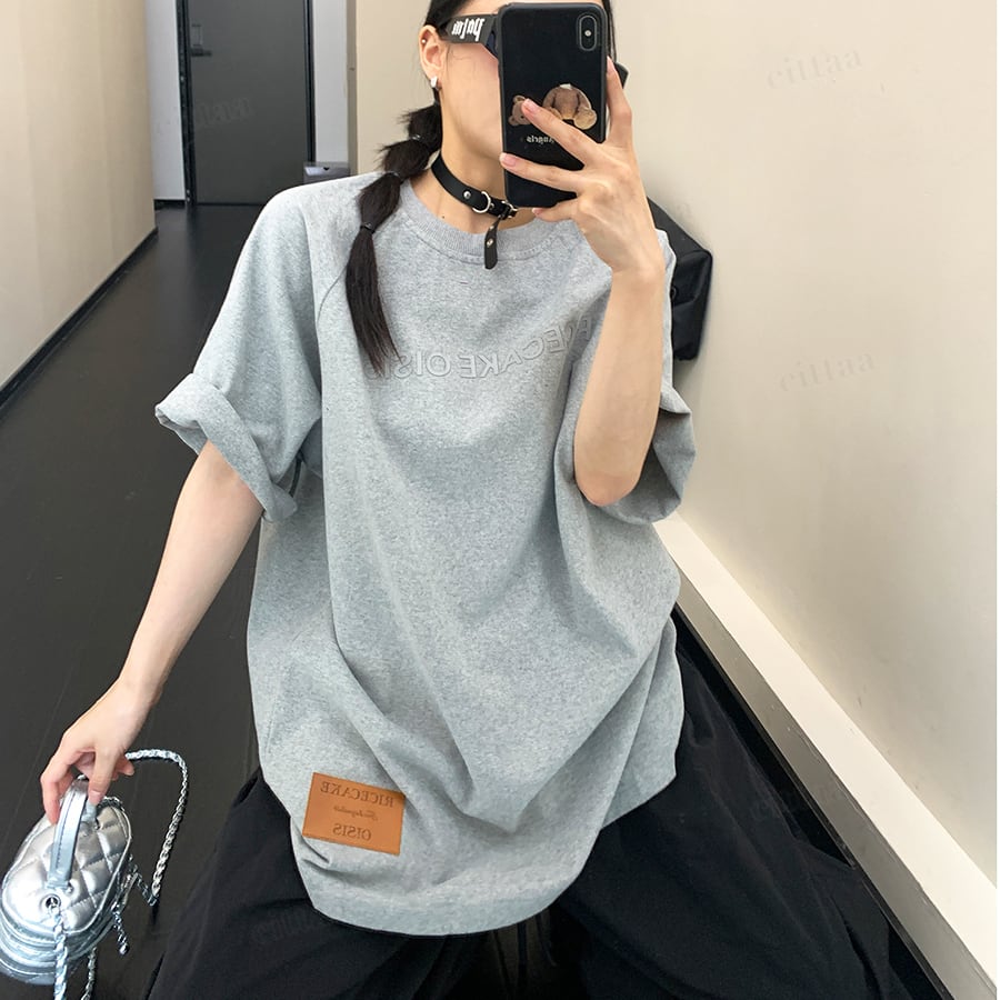 ★予約★D-962 2026春新作♡RICECAKE立体ロゴ半袖ラグランTシャツ グレー