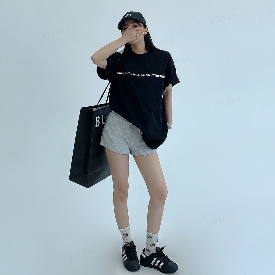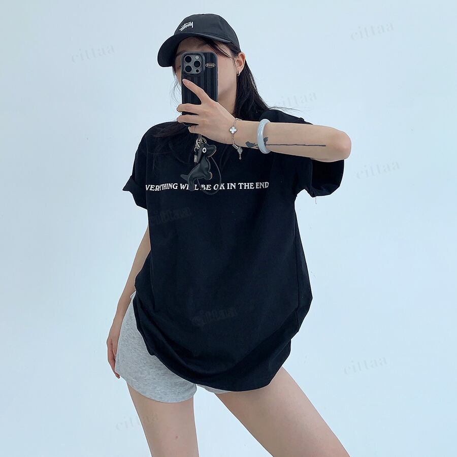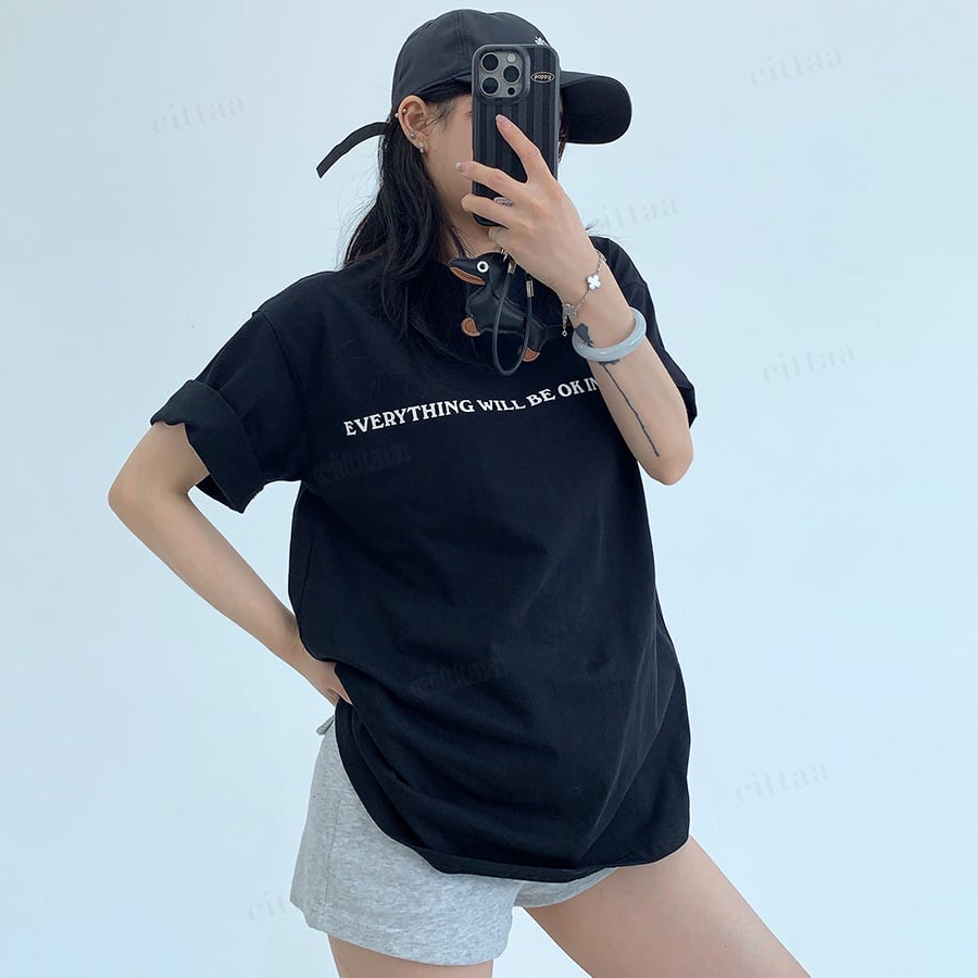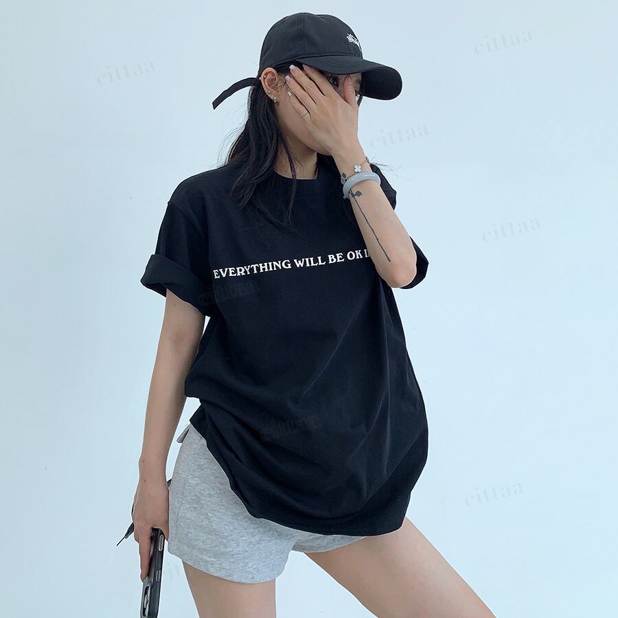 ★予約★D-969 2026春新作♡EVERYTHING英字ロゴ半袖Tシャツ ブラック