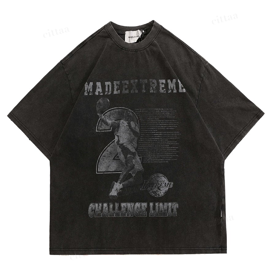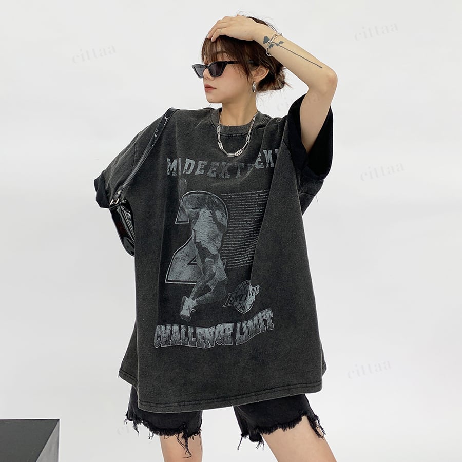 ★予約★D-983 2026春新作♡LIMITヴィンテージ風バスケットプリント半袖Tシャツ ブラック