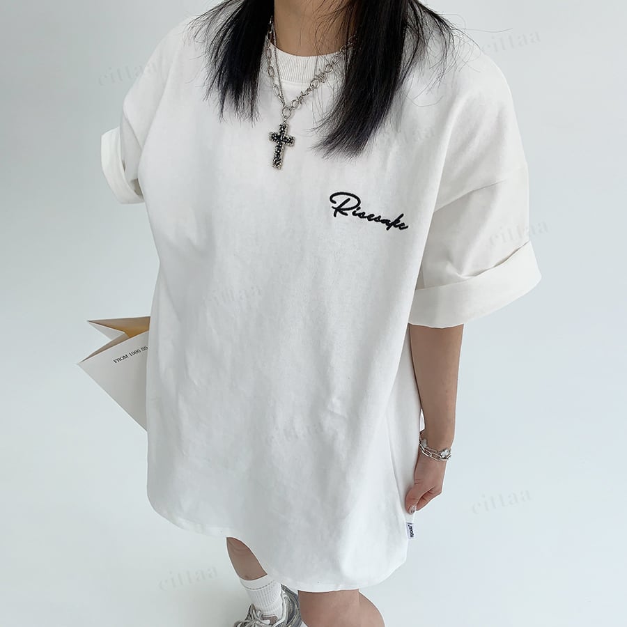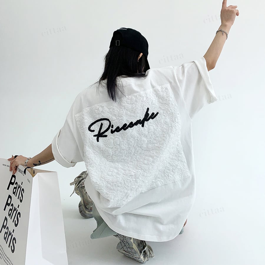 ★予約★D-984 2026春新作♡Ricecakeジャガードラベル半袖Tシャツ ホワイト