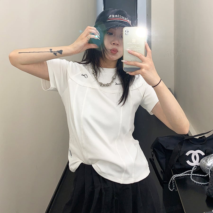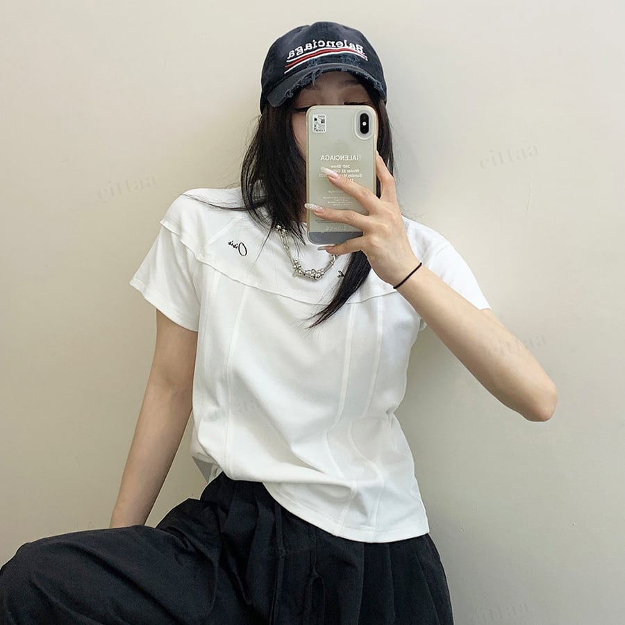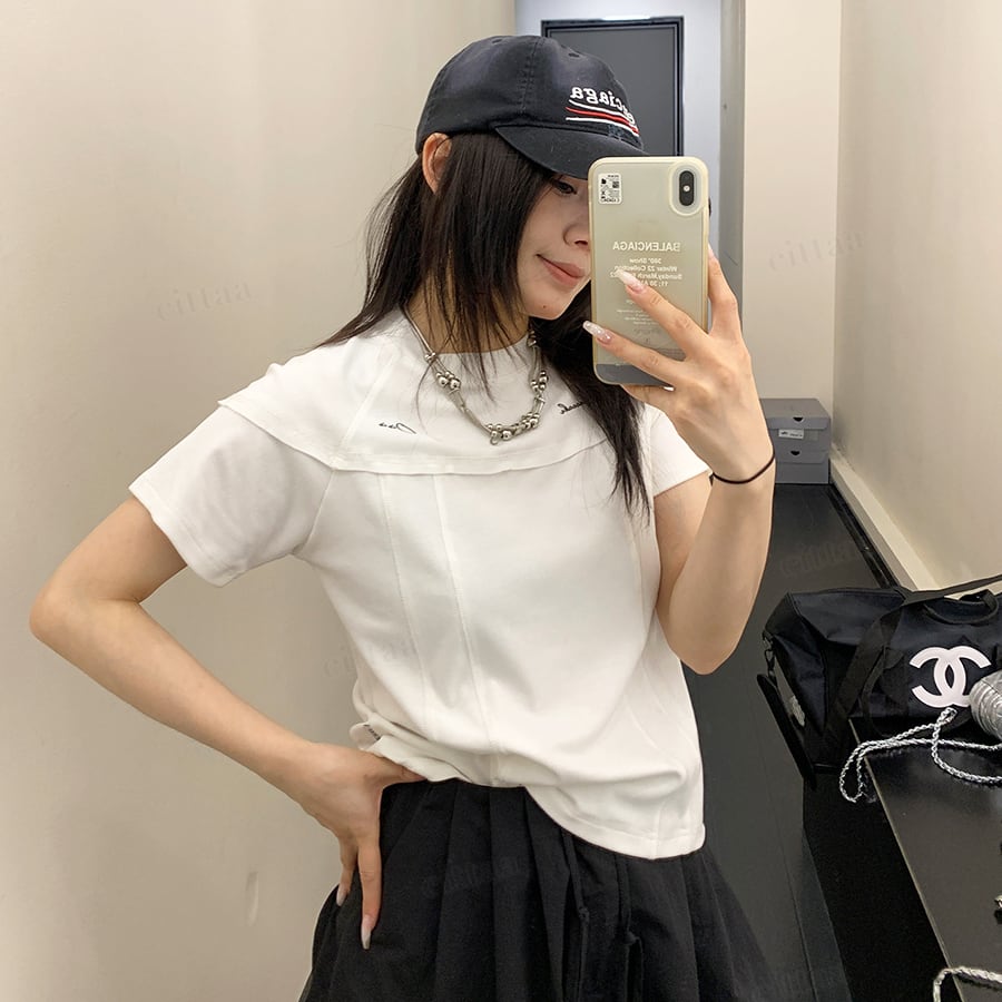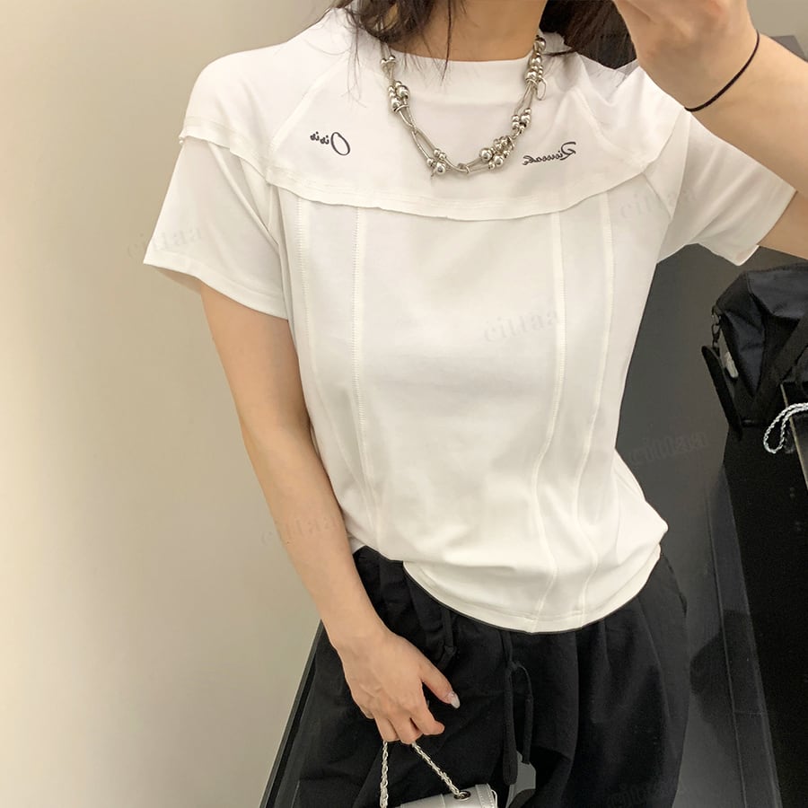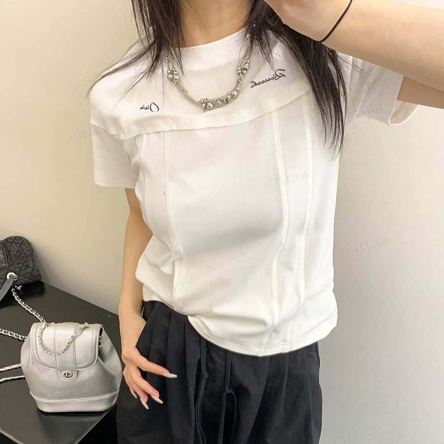 ★予約★D-987 2026春新作♡Oisis切り替えデザインショート丈半袖Tシャツ ホワイト