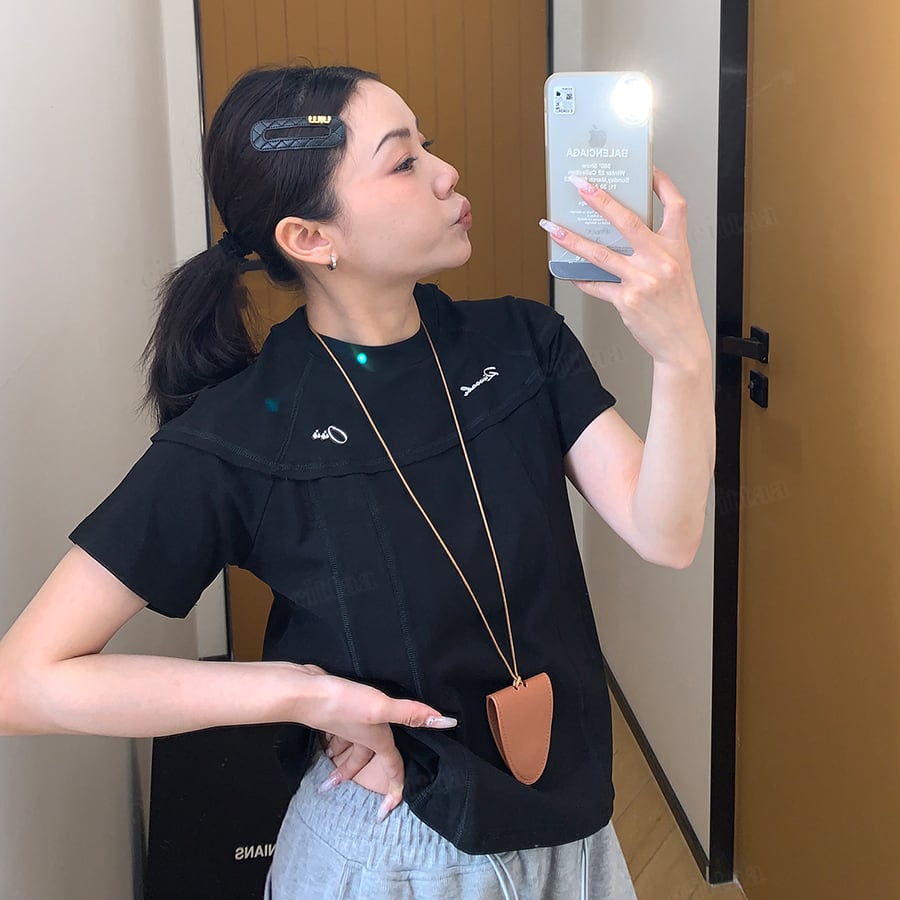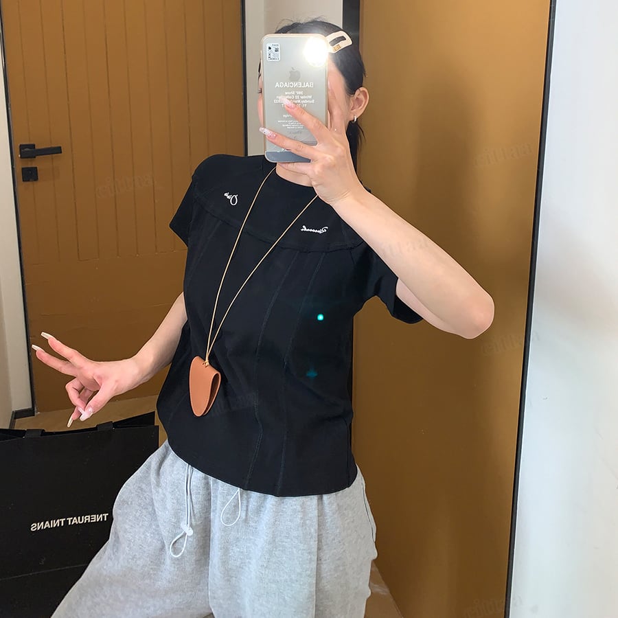 ★予約★D-987 2026春新作♡Oisis切り替えデザインショート丈半袖Tシャツ ブラック
