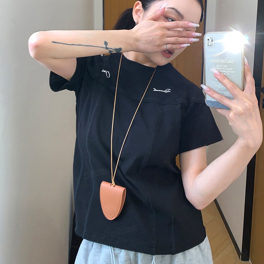 シンプルながらもデザイン性があり、コーデにさりげない個性をプラスしてくれる一枚です。