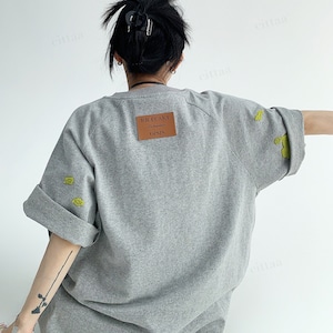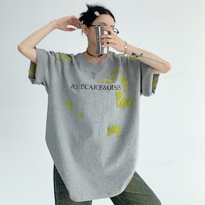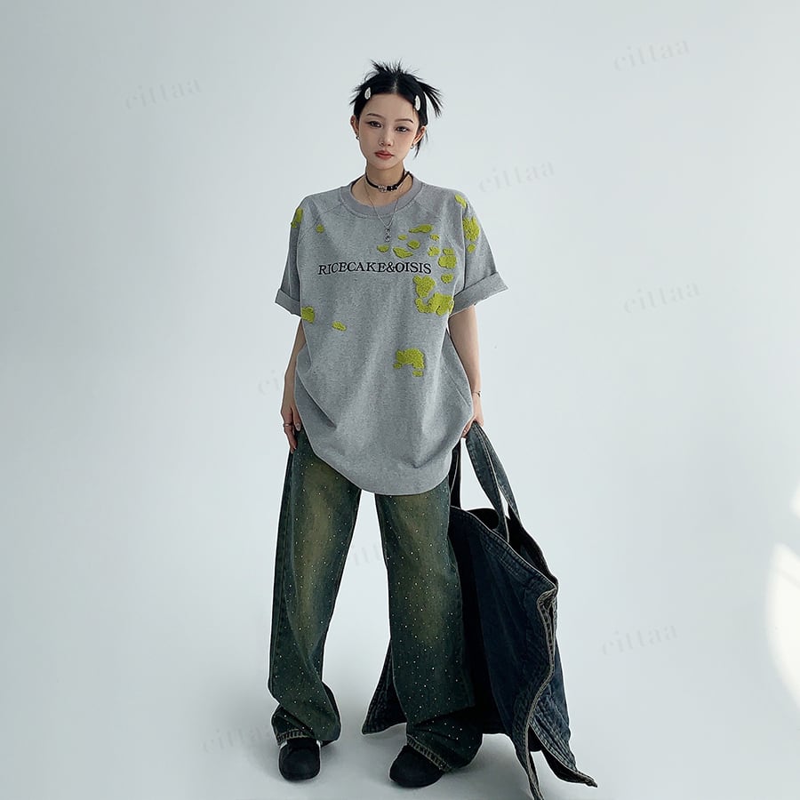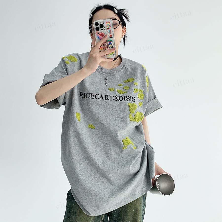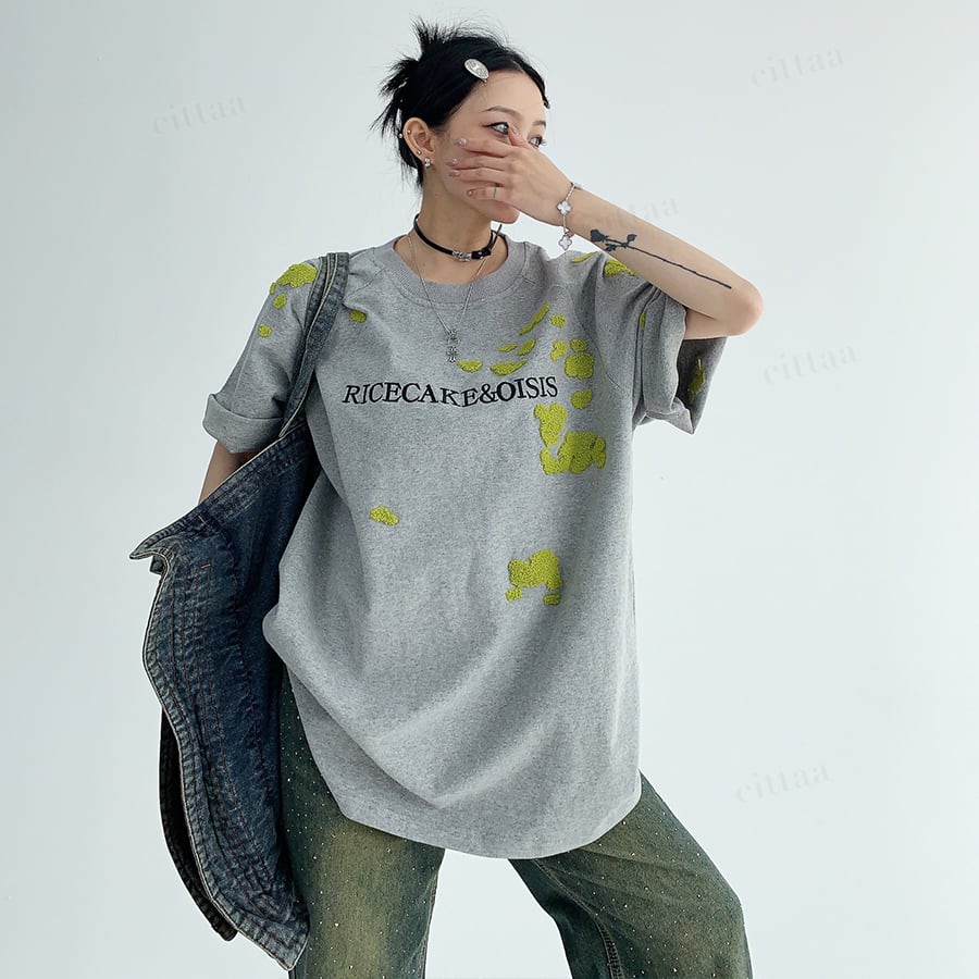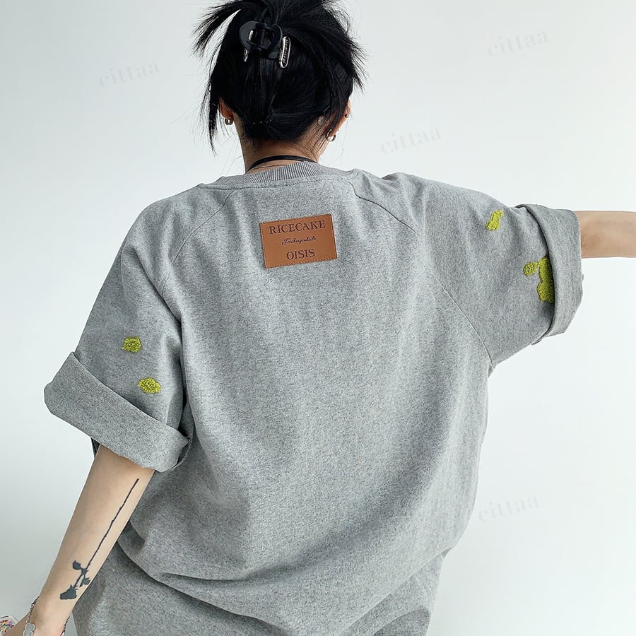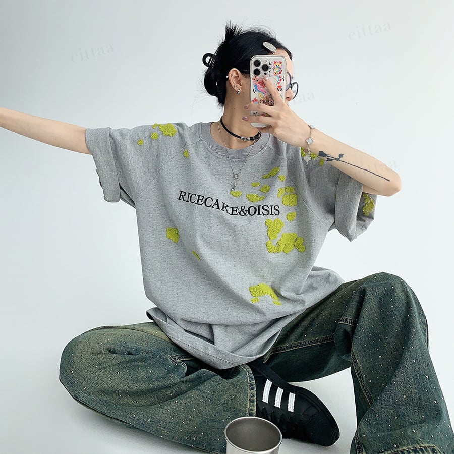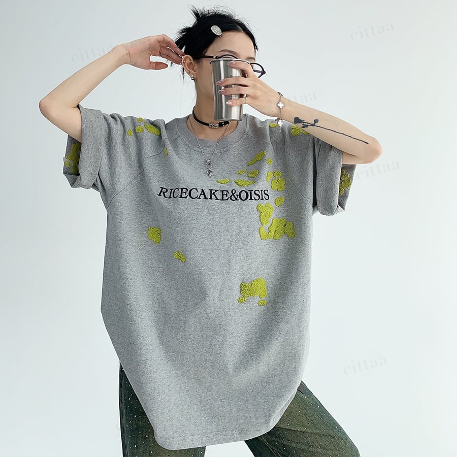 ★予約★D-994 2026春新作♡RICECAKEペイント風サガラ刺繍Tシャツ グレー