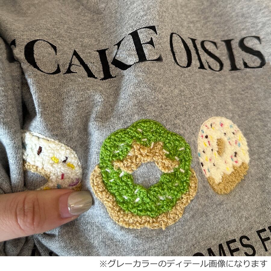 ドーナツモチーフのサガラ刺繍が目を惹くデザイン。もこもことした立体的な刺繍で、シンプルながらも周りと差がつくアイテムです。ラグランデザインでカジュアルな雰囲気に仕上がり、大人カジュアルコーデにもぴったり。
