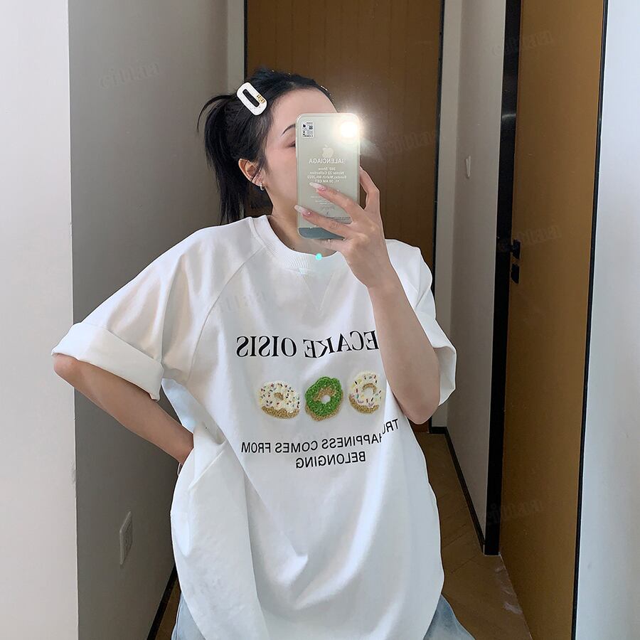 ★予約★D-998 2026春新作♡RICECAKEドーナツサガラ刺繍デザイン半袖Tシャツ ホワイト