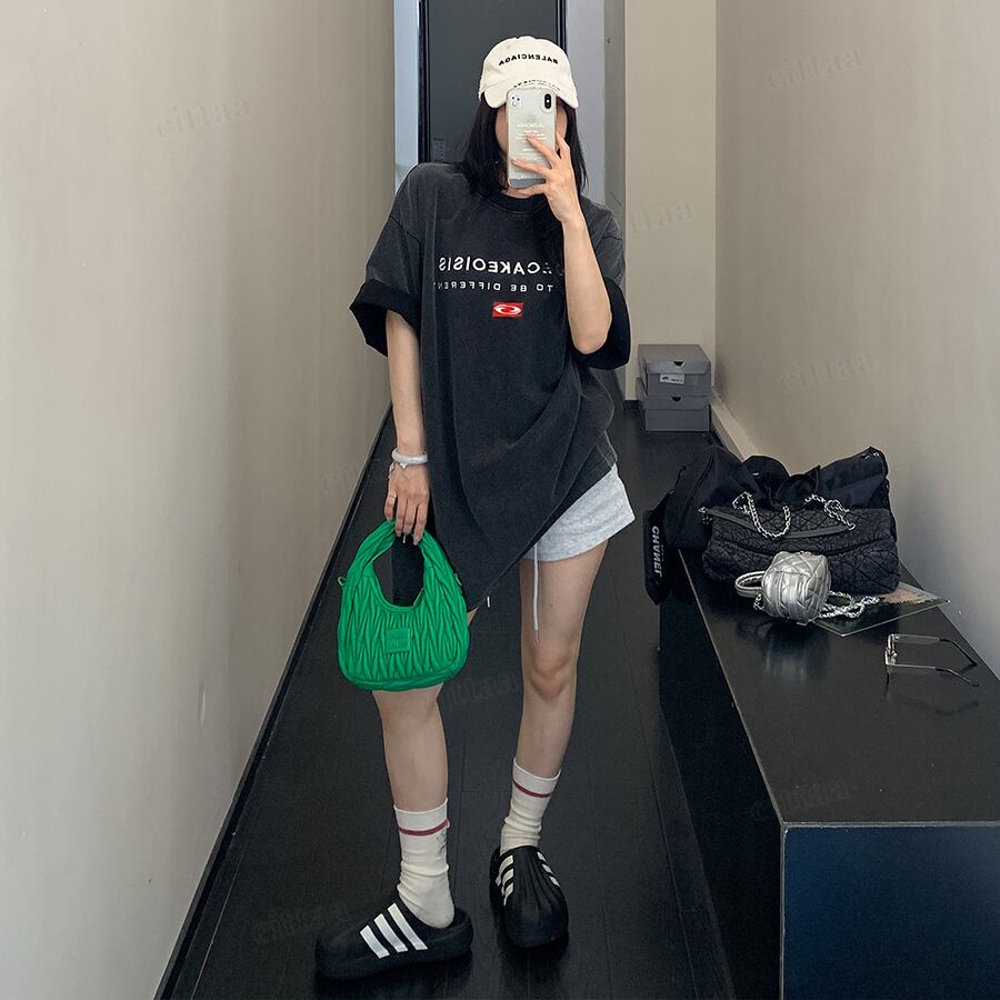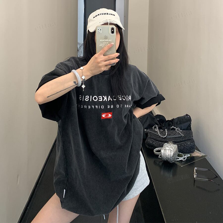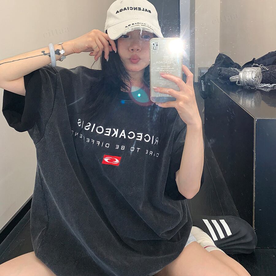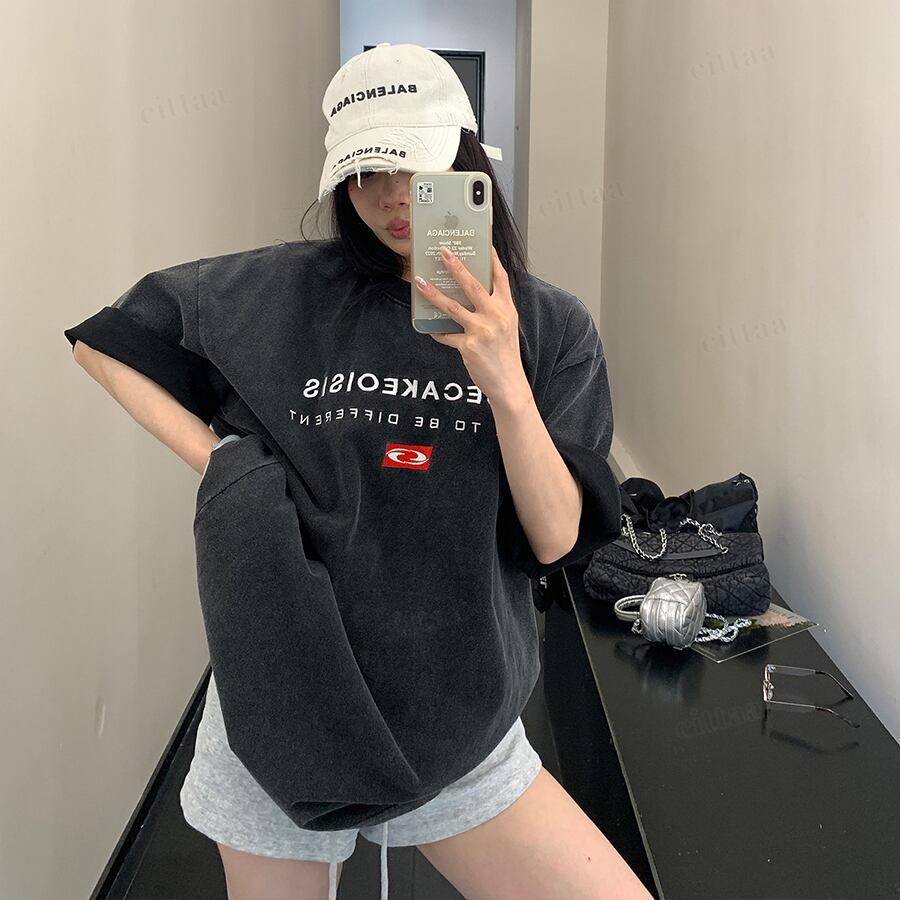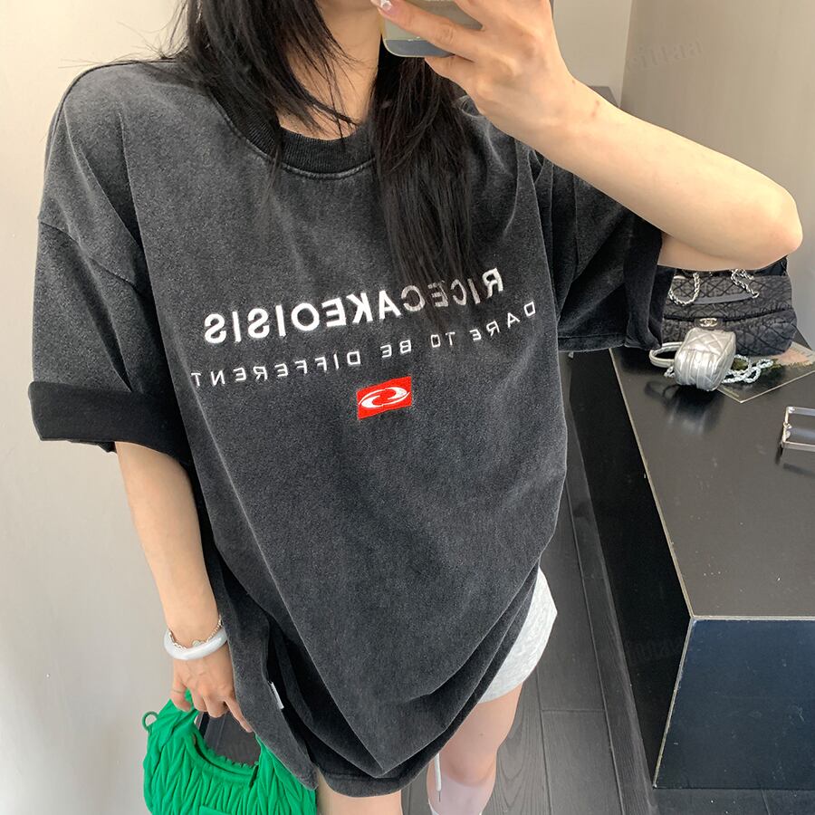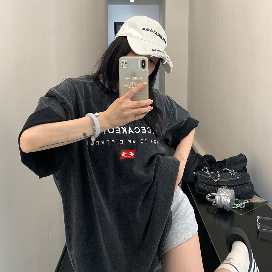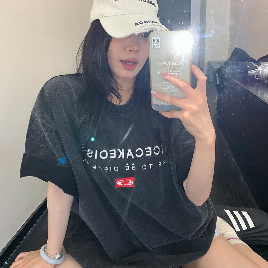 ★予約★D-999 2026春新作♡DEAR刺繍ロゴピグメント加工半袖Tシャツ ブラック