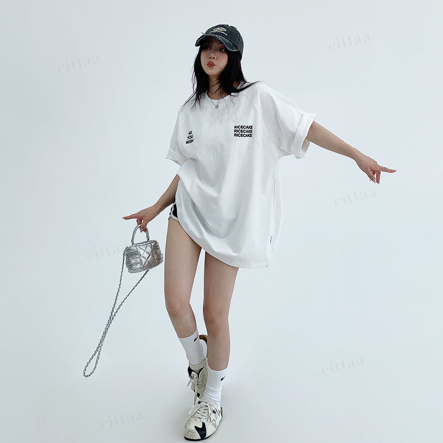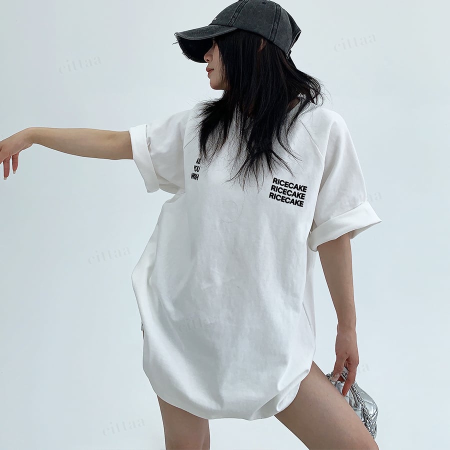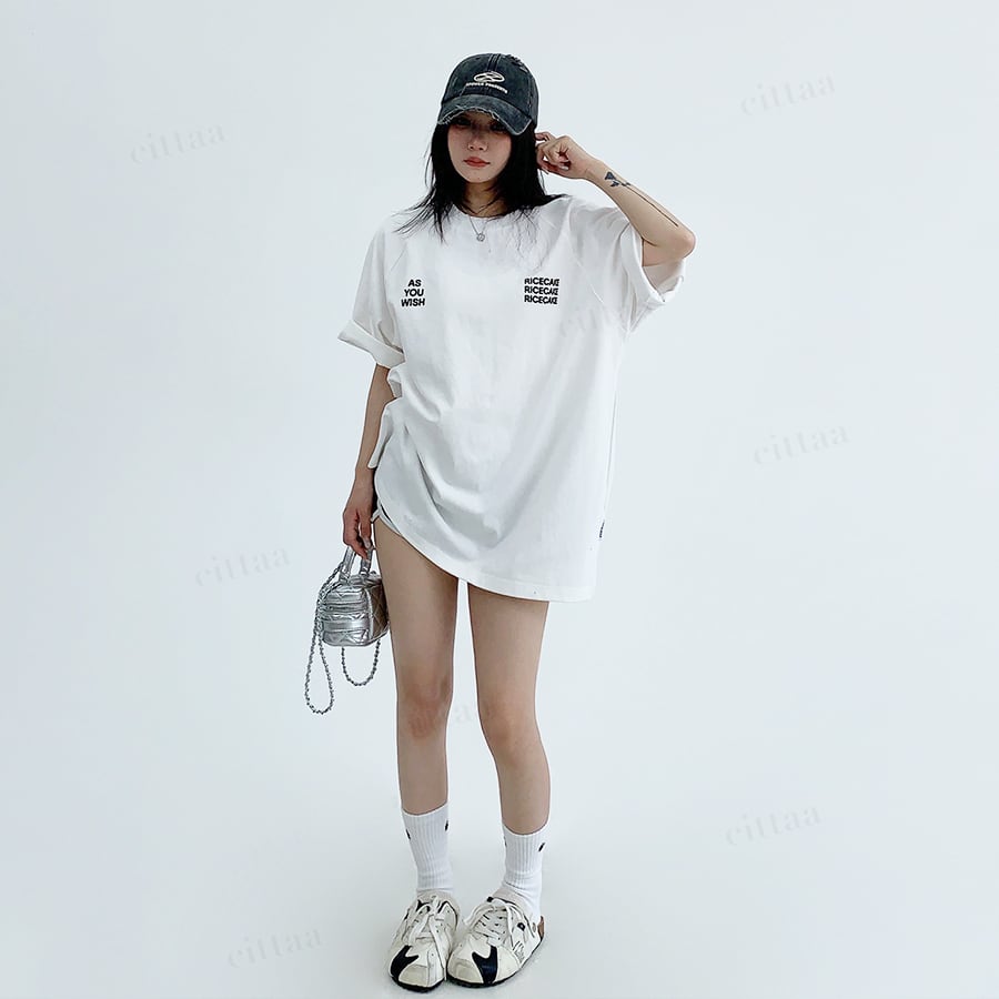 ★予約★D-1001 2026春新作♡WISHバックロゴラグラン半袖Tシャツ ホワイト