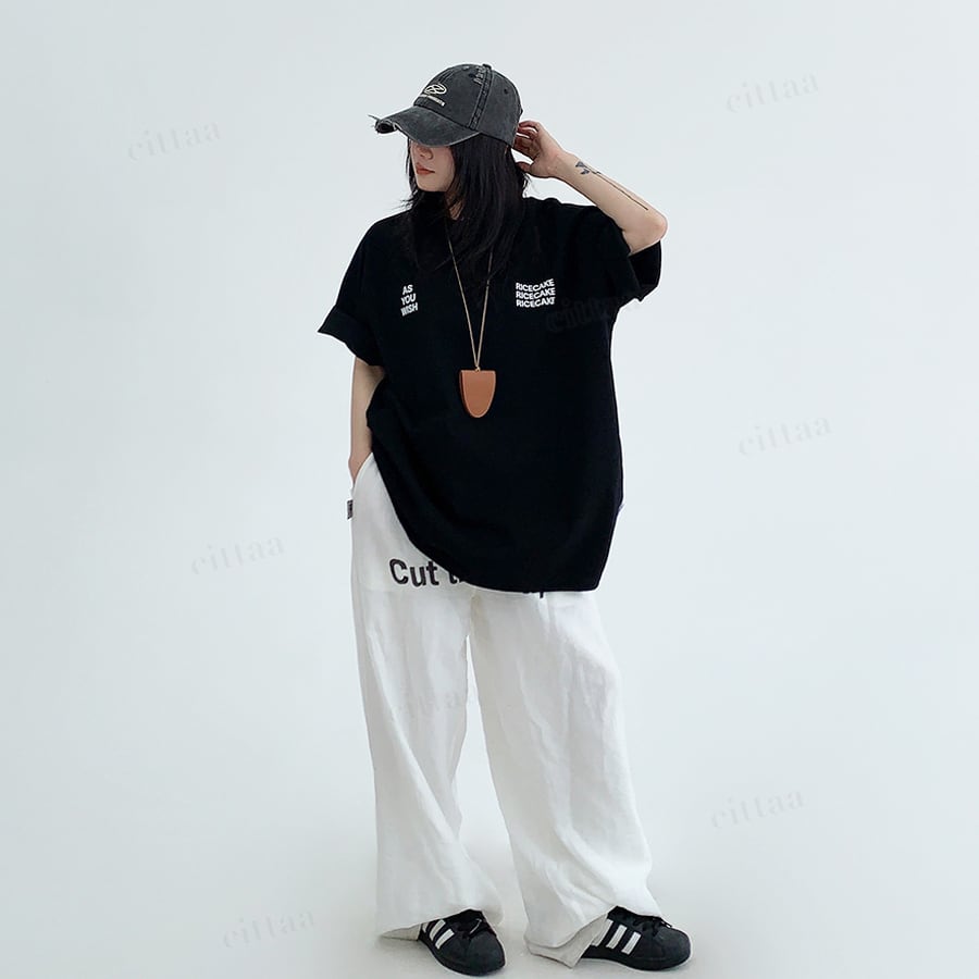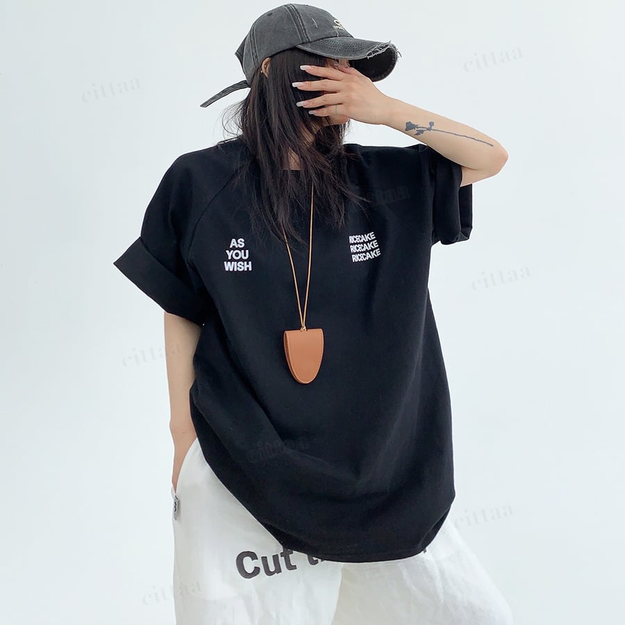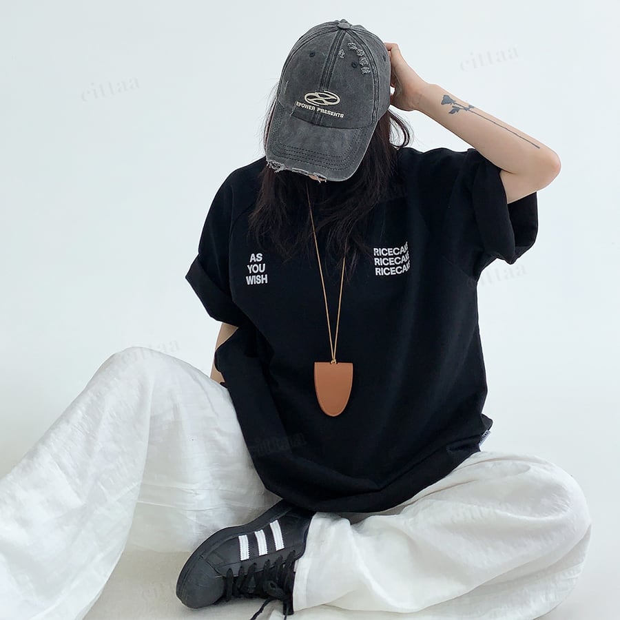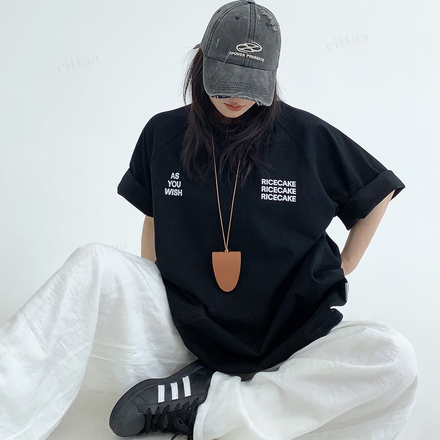★予約★D-1001 2026春新作♡WISHバックロゴラグラン半袖Tシャツ ブラック