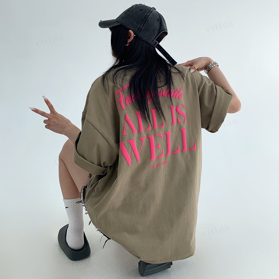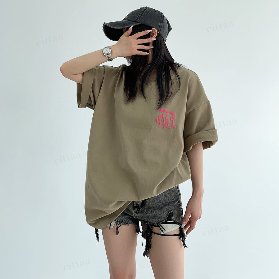 ★予約★D-1002 2026春新作♡ALL発泡プリント半袖Tシャツ ブラウン