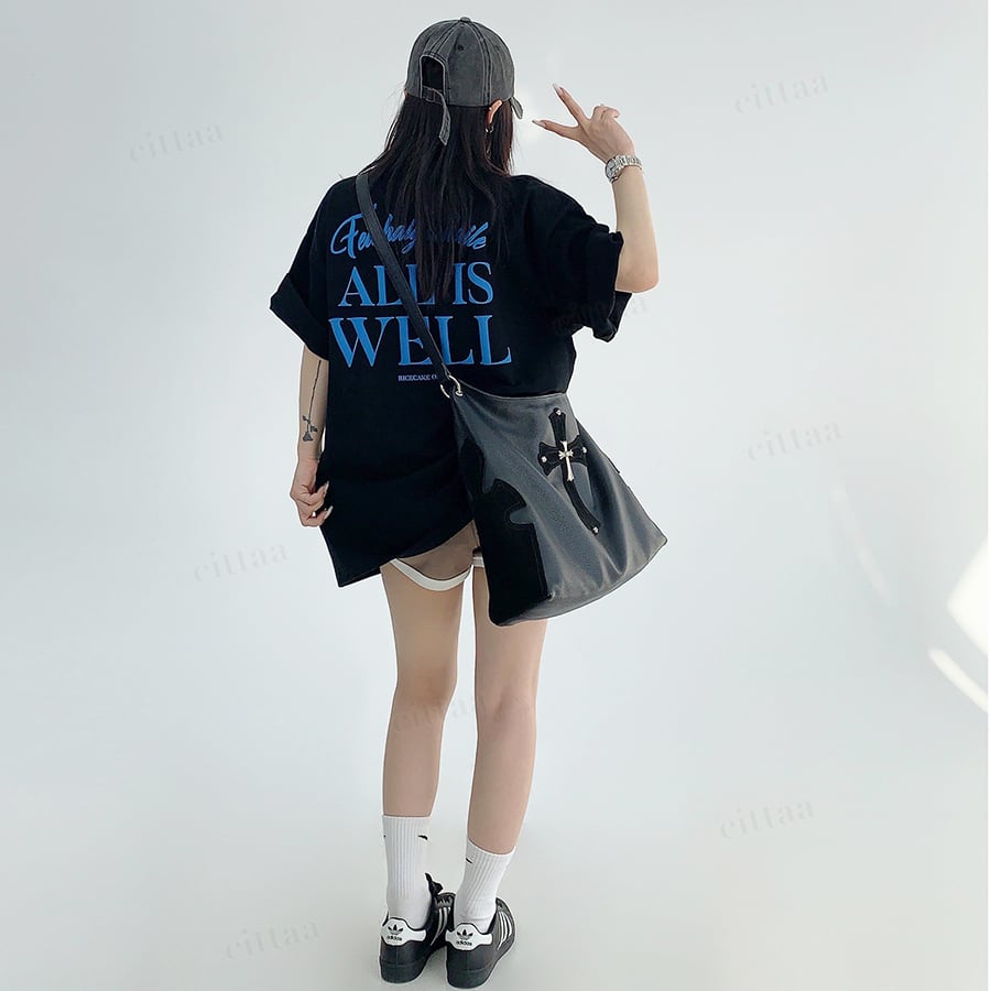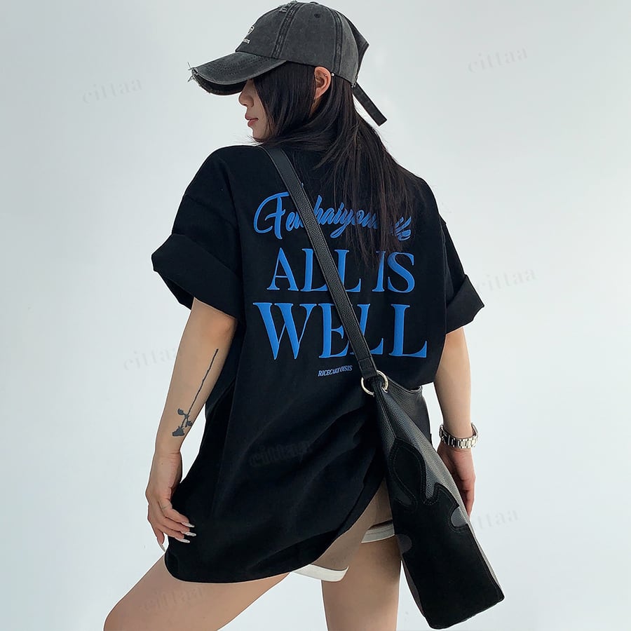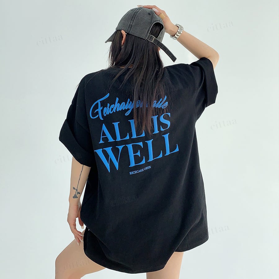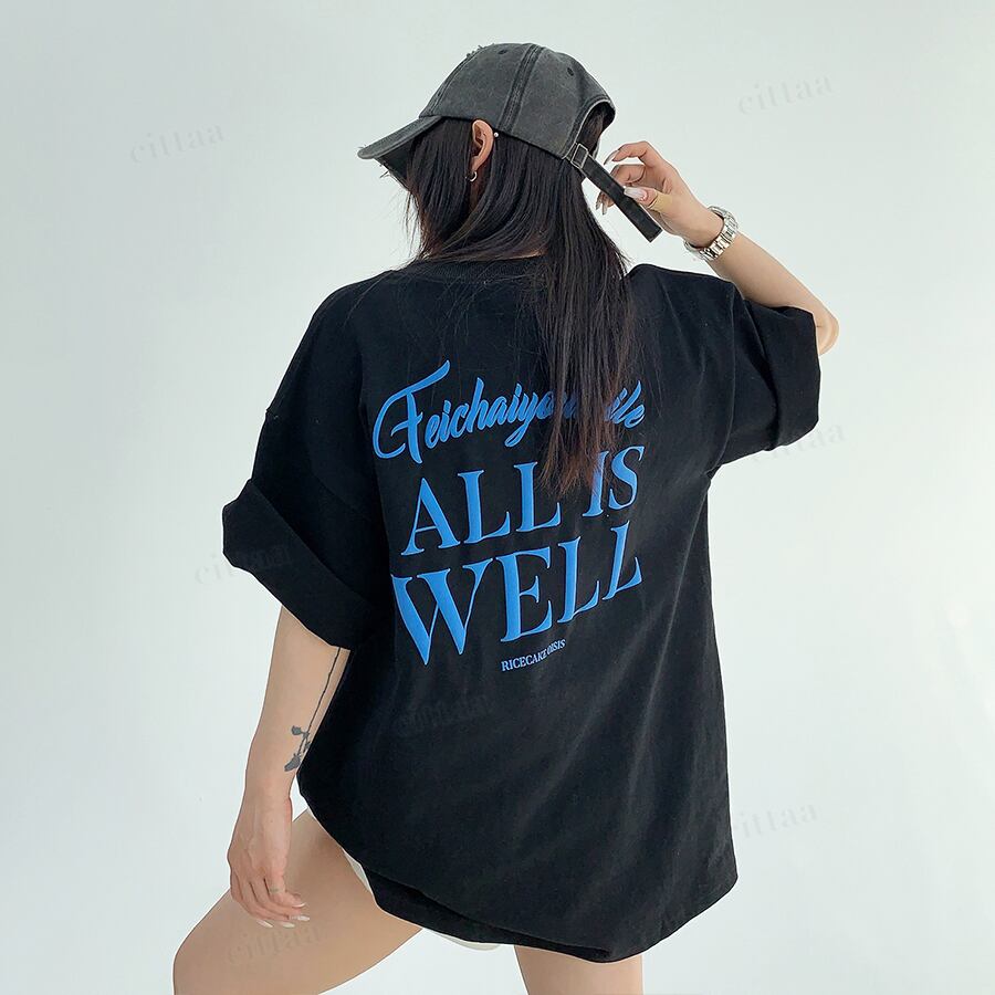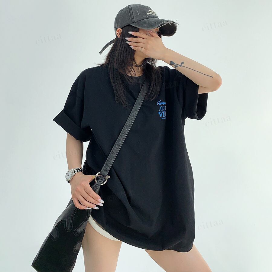 ★予約★D-1002 2026春新作♡ALL発泡プリント半袖Tシャツ ブラック