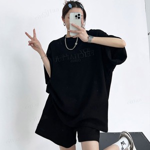 ★予約★D-1007 2026春新作♡【上下セット】FEICHAI刺繍ロゴワッフル半袖セットアップ ブラック