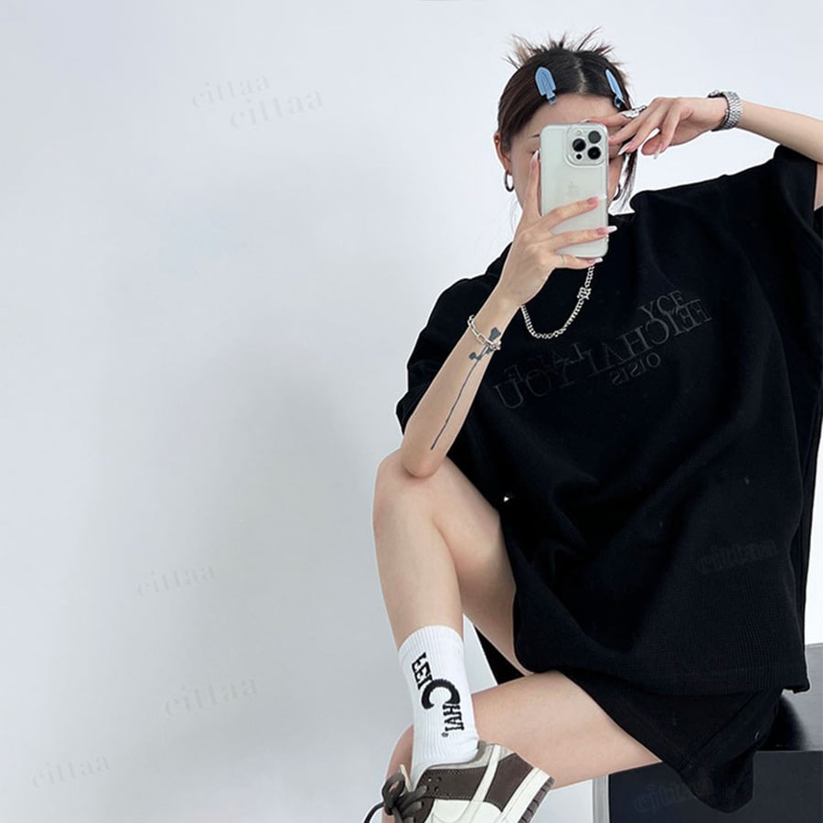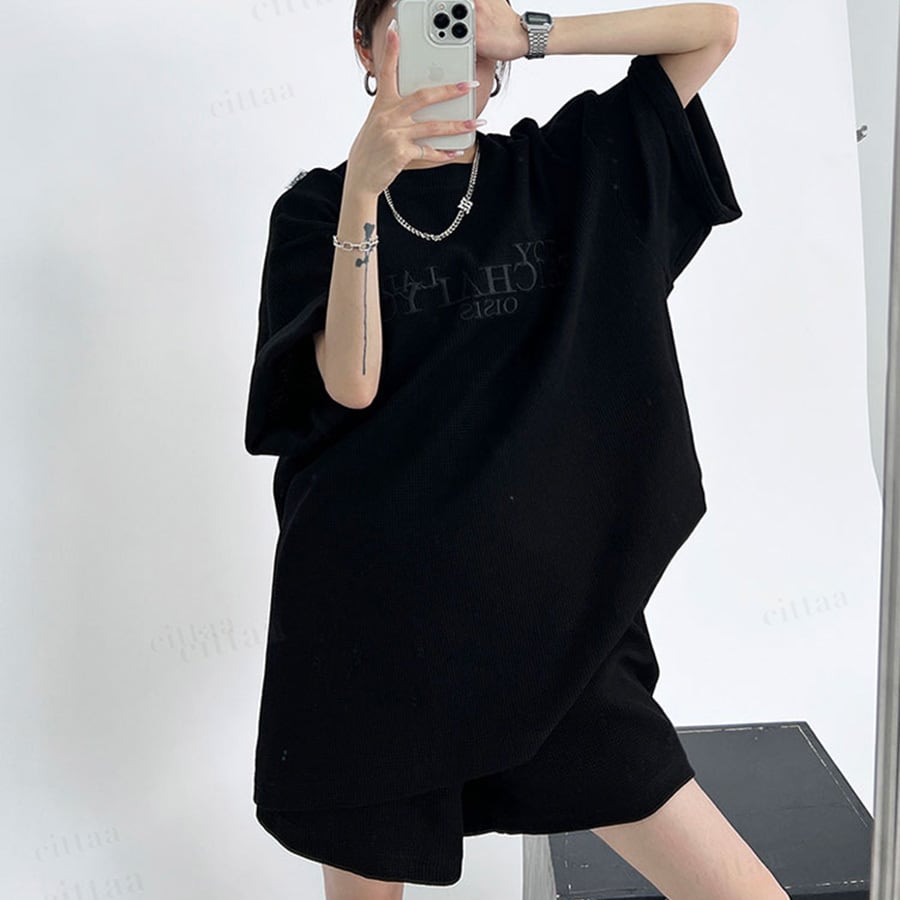 フロントの刺繍ロゴがアクセントに効いた半袖トップス×ショートパンツのセットアップ。高見えデザインで大人っぽいストリートカジュアルが完成。上下そのまま着るだけでコーデが決まります。ワッフル生地で着心地も快適。