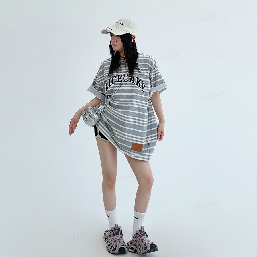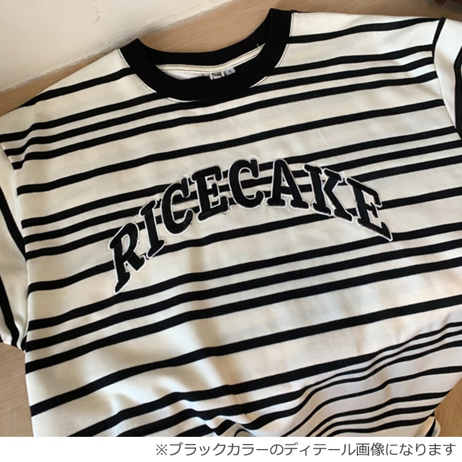 ★予約★D-1010 2026春新作♡RICECAKE刺繍ロゴボーダー柄半袖Tシャツ グレー