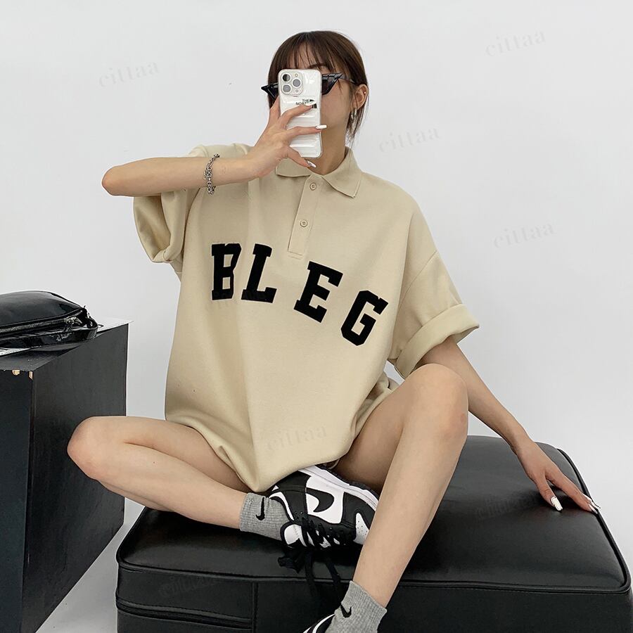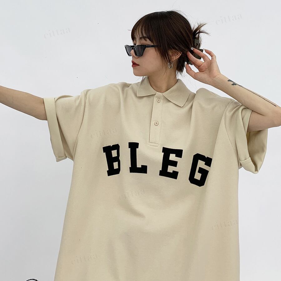 ★予約★D-1012 2026春新作♡BLEGロゴオーバーサイズ半袖ポロシャツ ベージュ