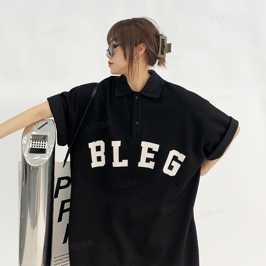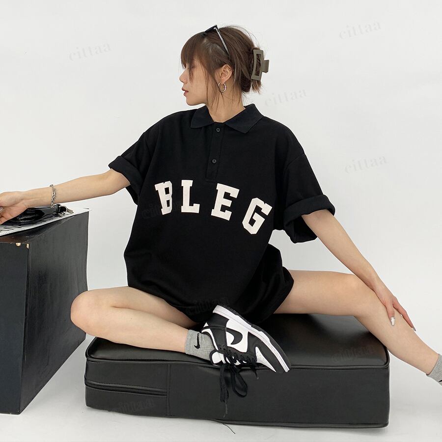 ★予約★D-1012 2026春新作♡BLEGロゴオーバーサイズ半袖ポロシャツ ブラック