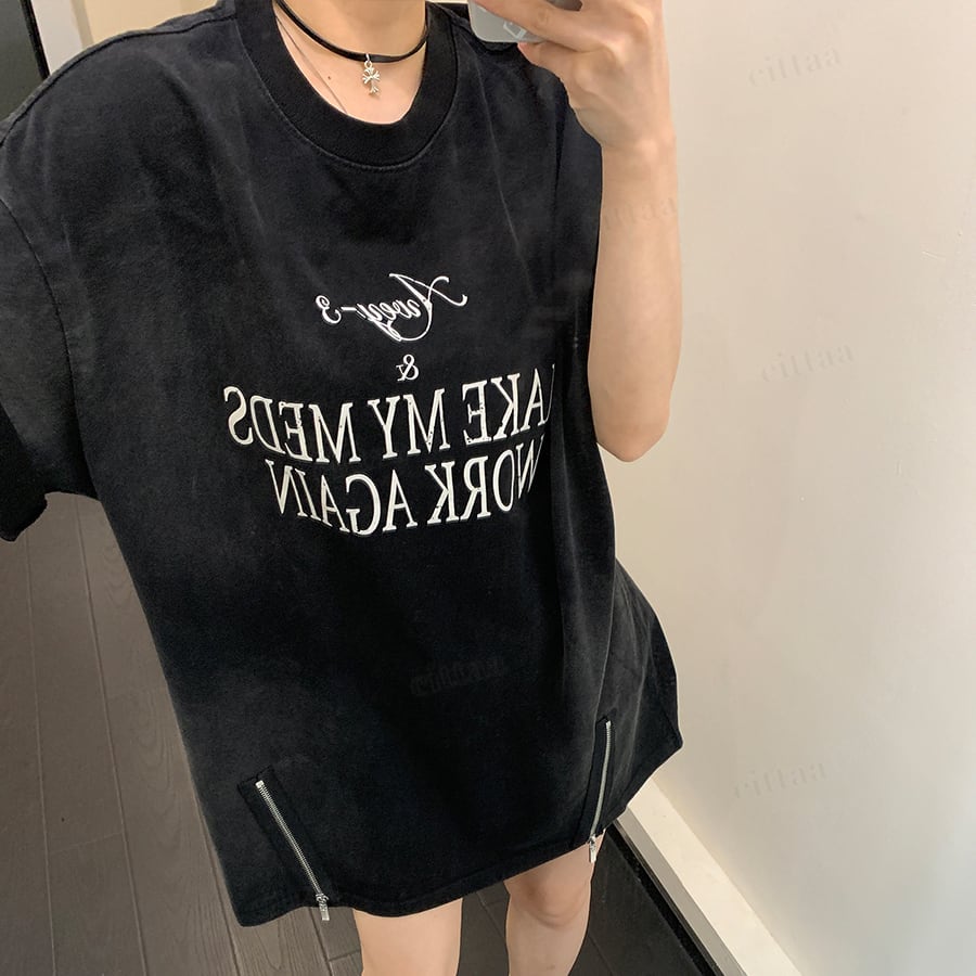 ★予約★D-1014 2026春新作♡MAKE裾ファスナーダメージデザイン半袖Tシャツ ブラック