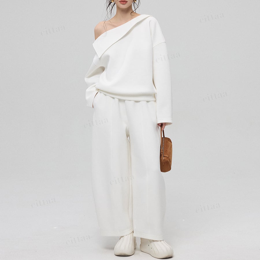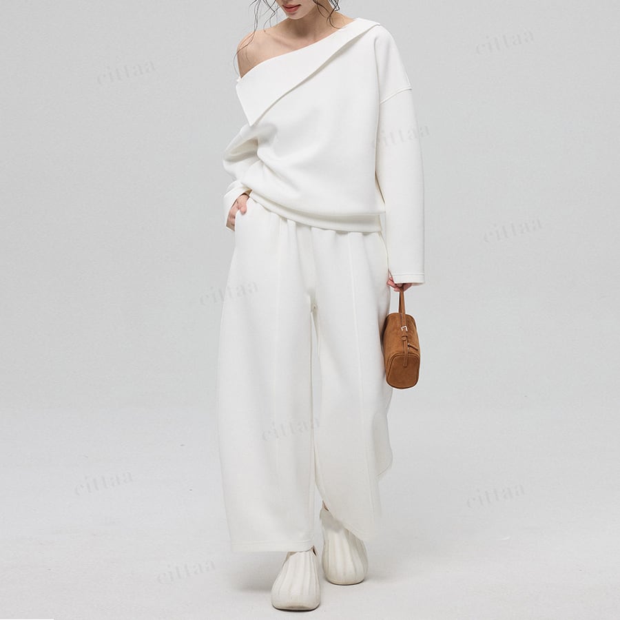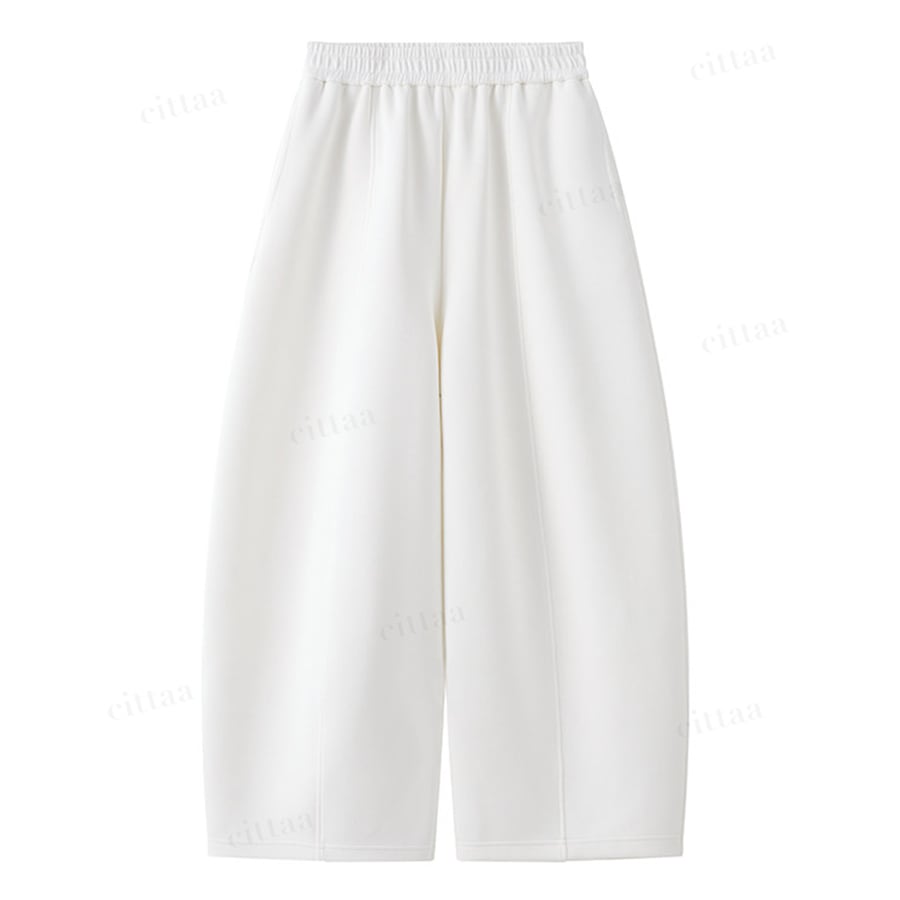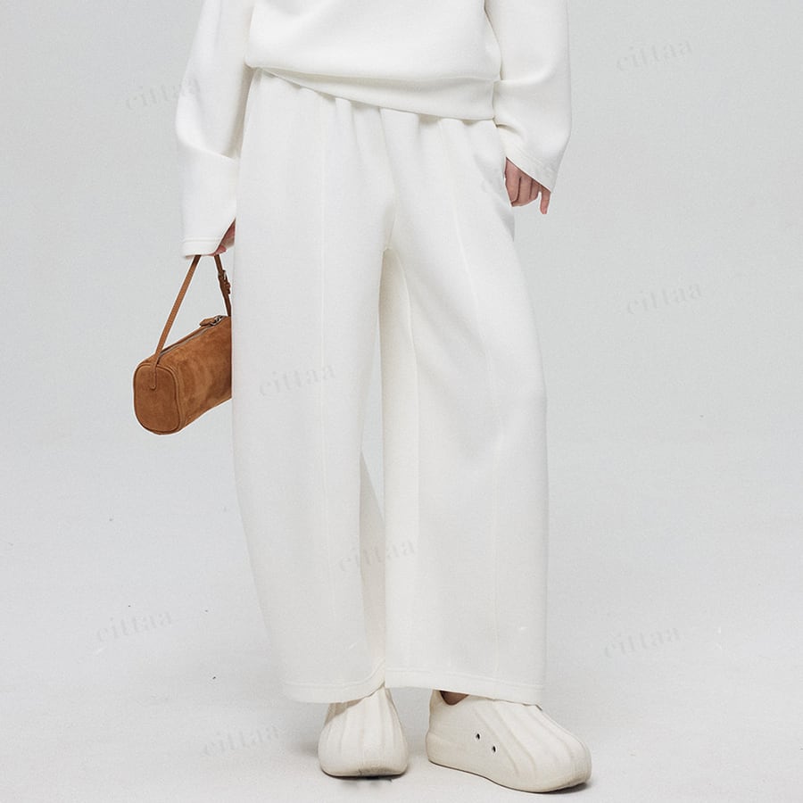 丸みのあるカーブラインが特徴のスウェットパンツ。立体的なシルエットが脚のラインをきれいに見せ、穿くだけで旬な着こなしに仕上がります。センターシームが縦ラインを強調し、すらっとした美脚効果も◎ハリ感のあるやわらかな生地でラフになりすぎず、キレイめな印象をキープ。シンプルなデザインで大人カジュアルにぴったりの一枚です。