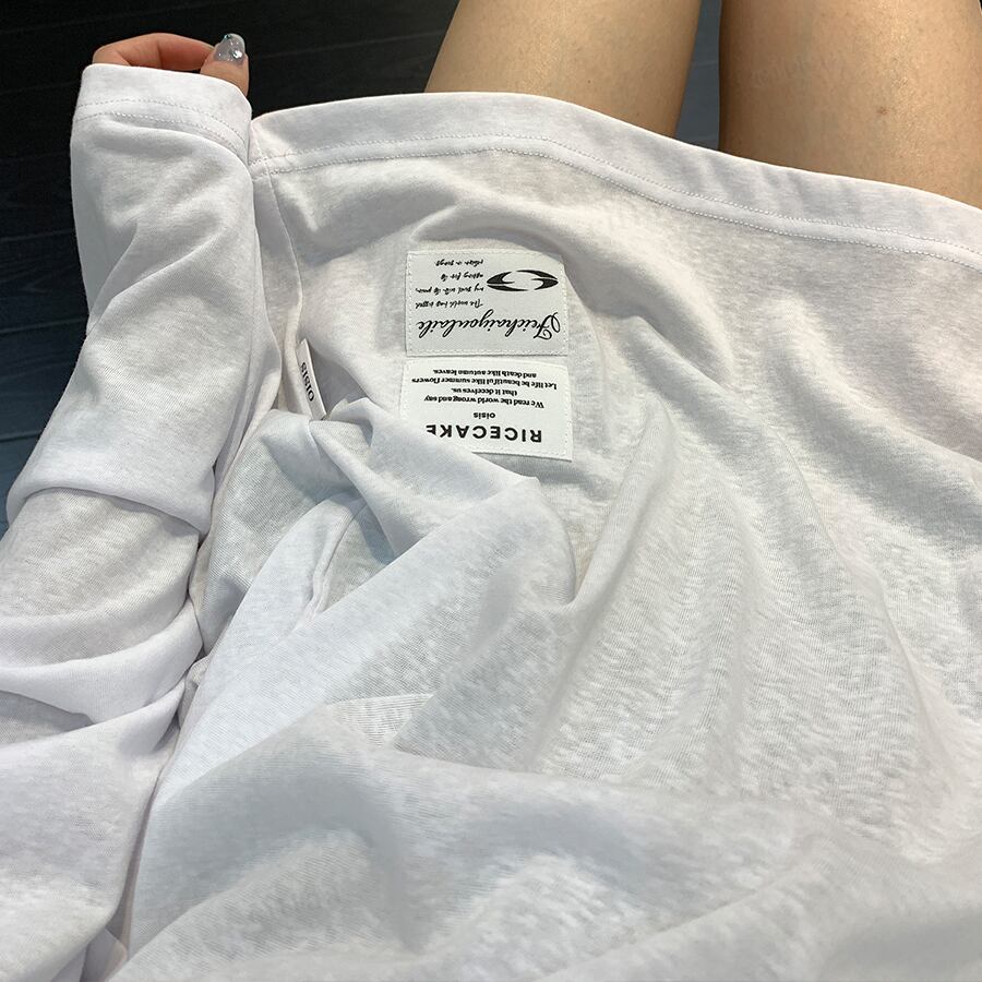 ★予約★D-1016 2026春新作♡ラグラン切り替えラベル付き薄手長袖Tシャツ ホワイト