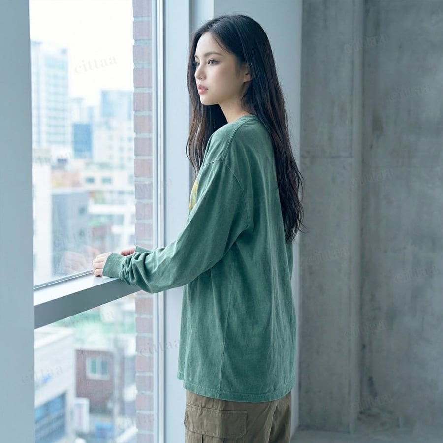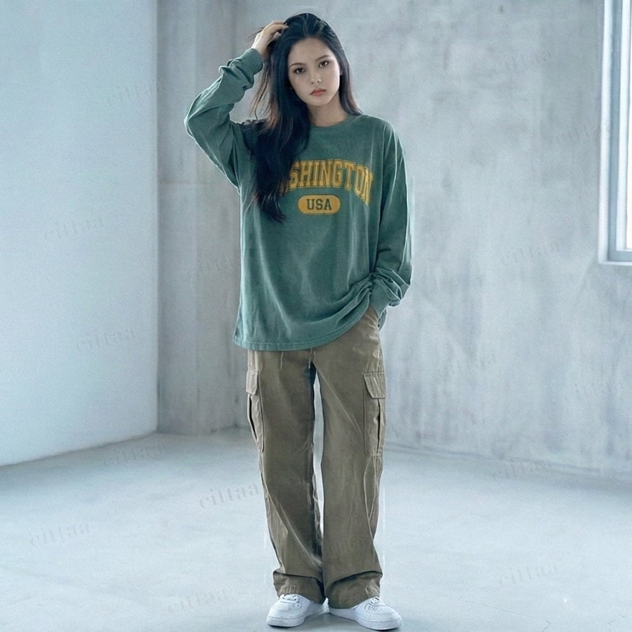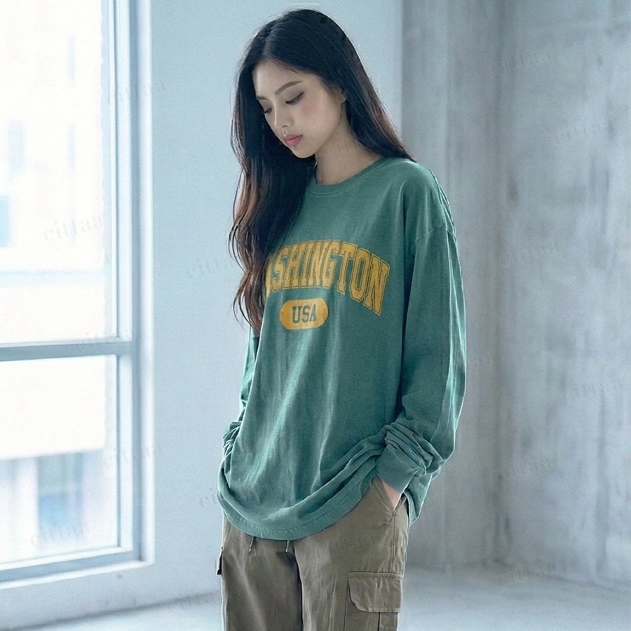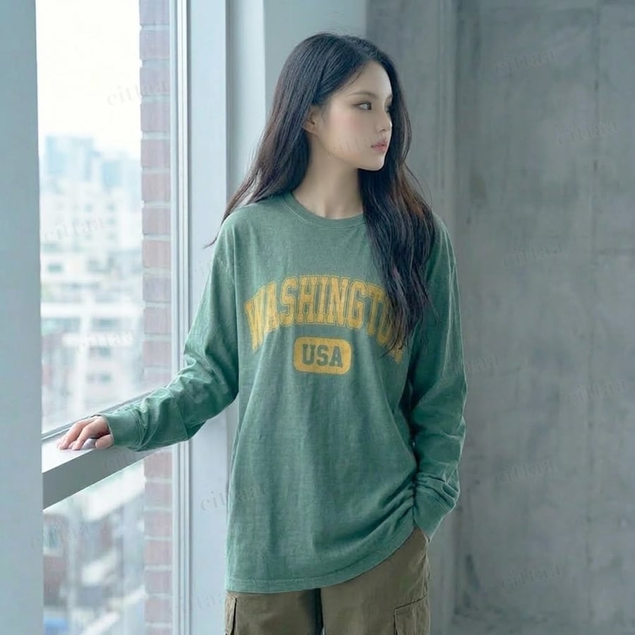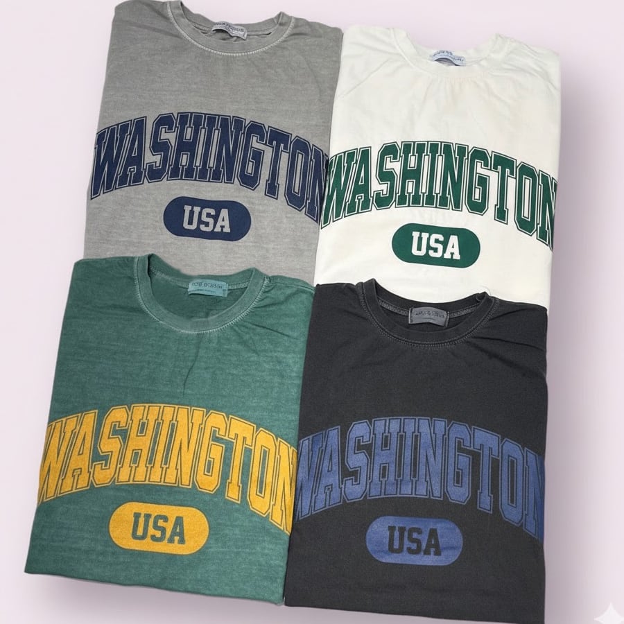Y-4815 2026春新作♡WASHINGTONロゴピグメント加工長袖Tシャツ グリーン 0310