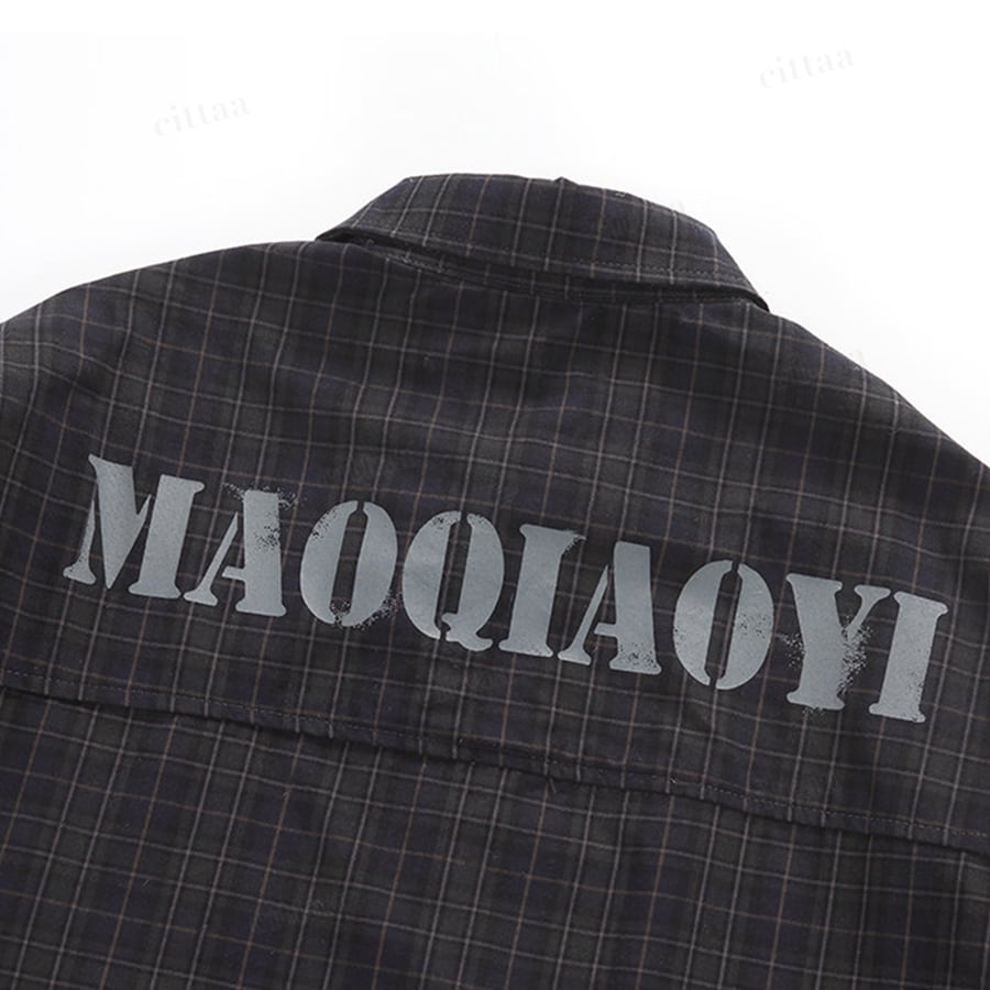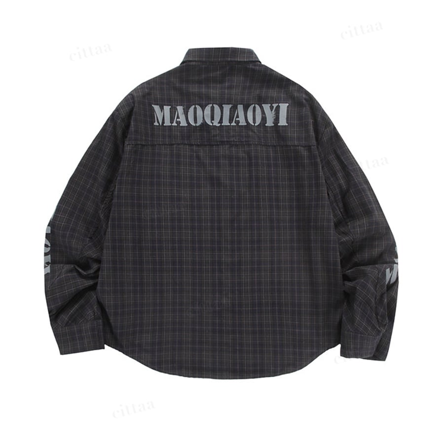 ★予約★D-1048 2026春新作♡MAOQIAOYIダメージロゴチェック柄シャツ ブラック