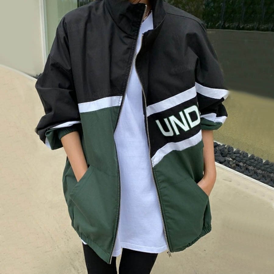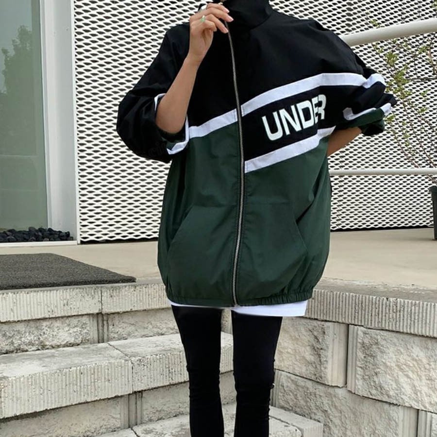 Y-4828 2026春新作♡UNDERロゴ配色デザイントラックジャケット カーキ 0313