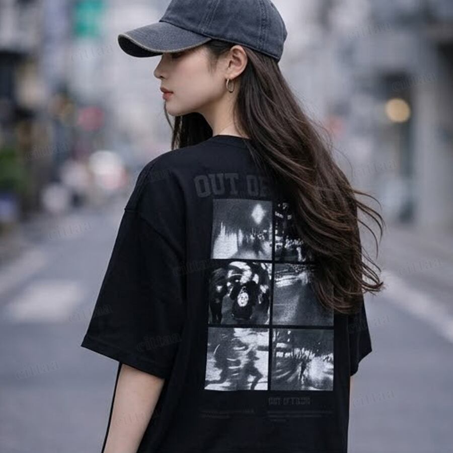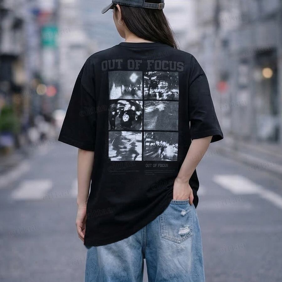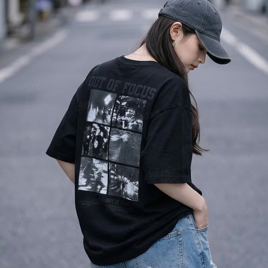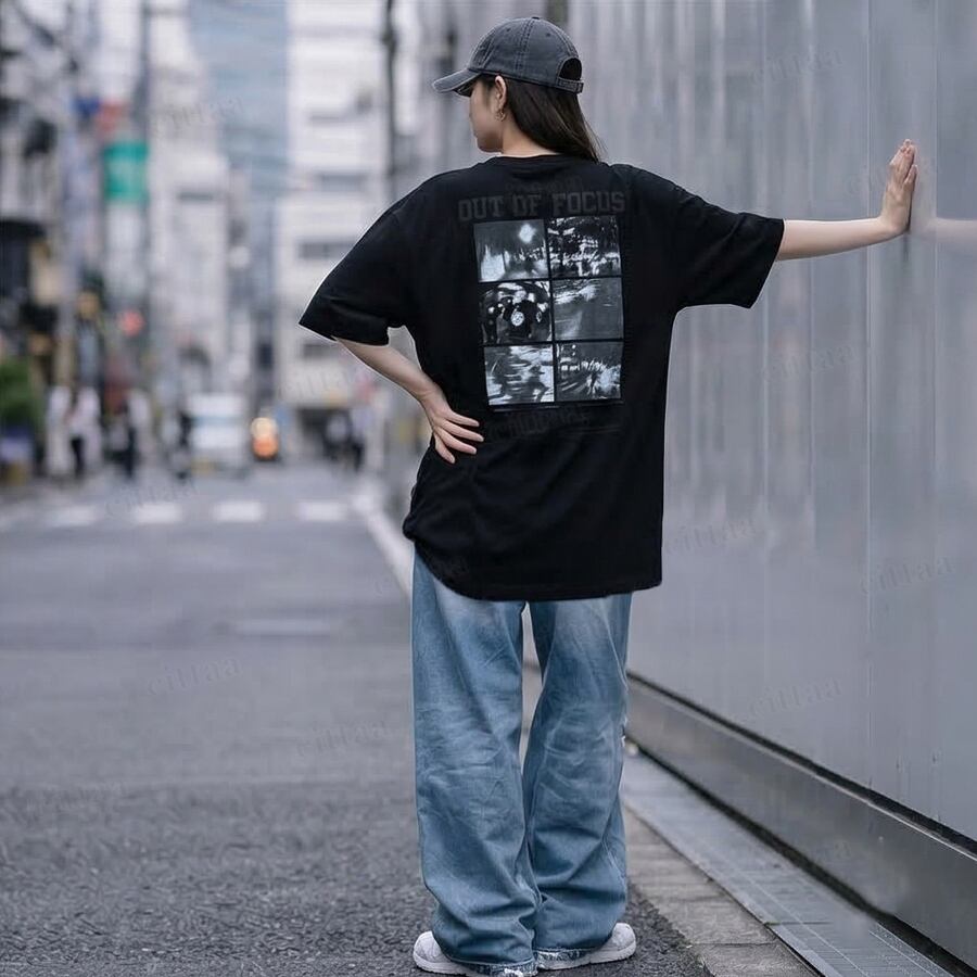 【即納】Y-4863 2026春新作♡FOCUSフォトプリント半袖Tシャツ ブラック 0313