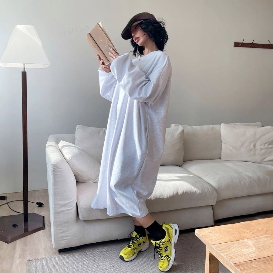 さらっと一枚でコーデが完成するので、忙しい朝にも頼れるアイテム。デニムやレギンス、スカートとレイヤードして雰囲気を変えた着こなしも楽しめます。ロングシーズン活躍する一枚です。