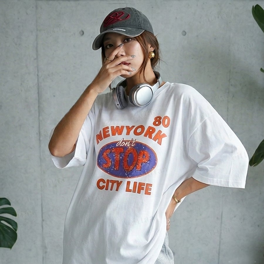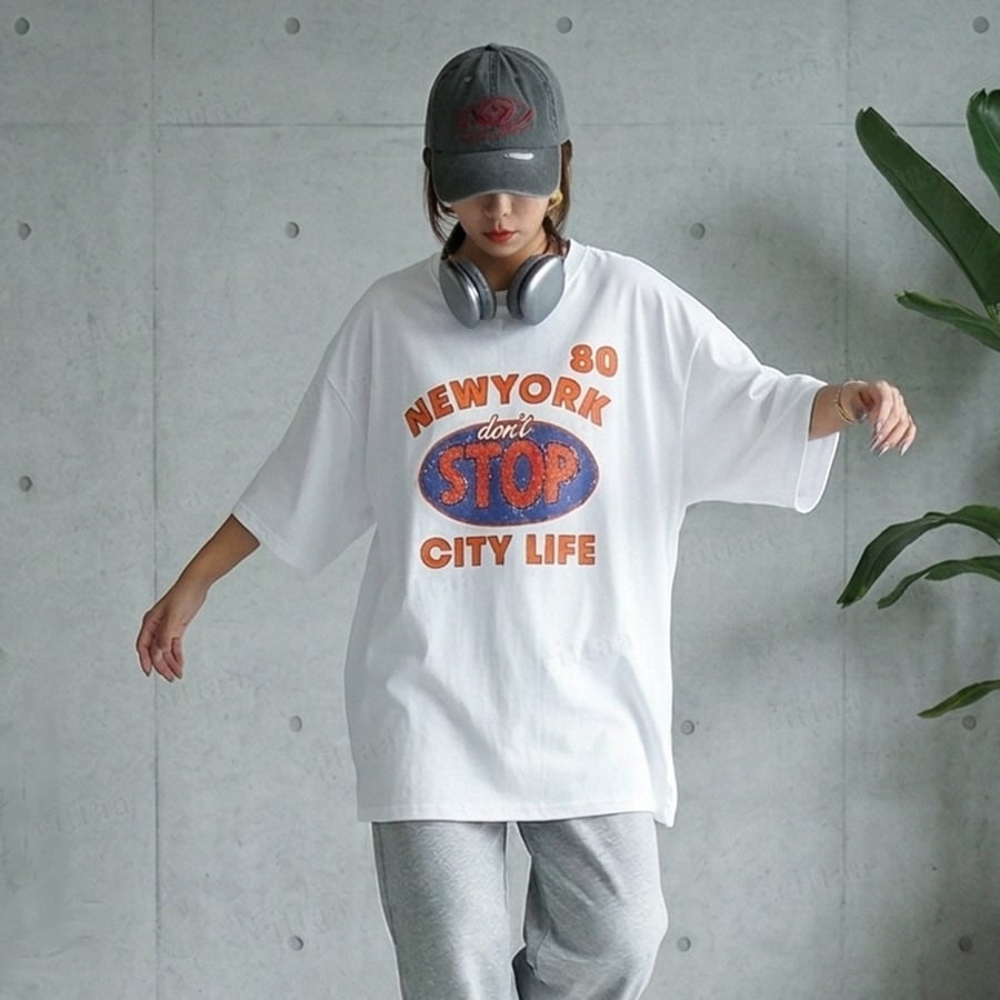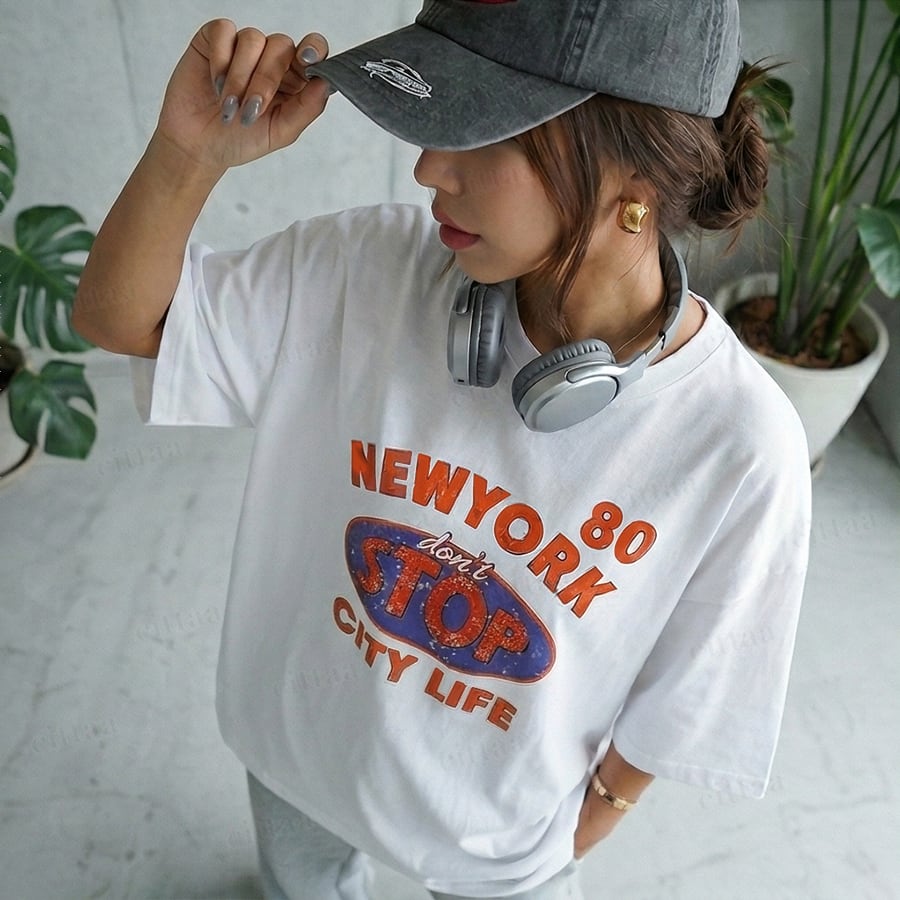 【即納】Y-4849 2026春新作♡STOPレトロプリント半袖Tシャツ ホワイト 0320