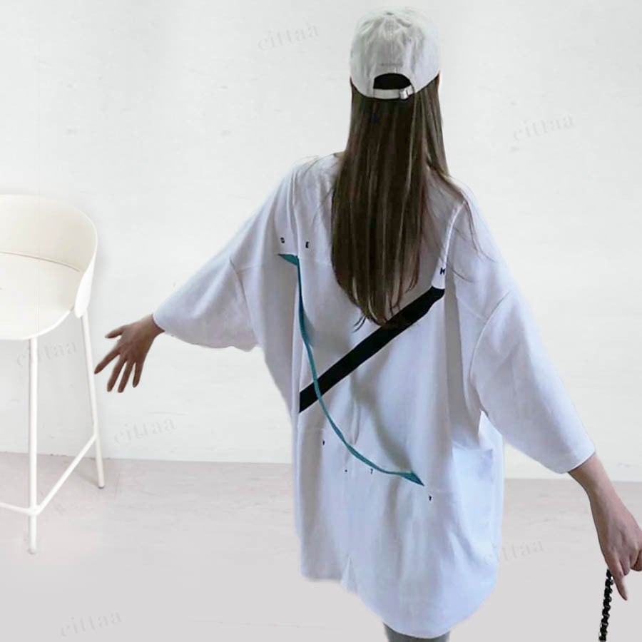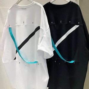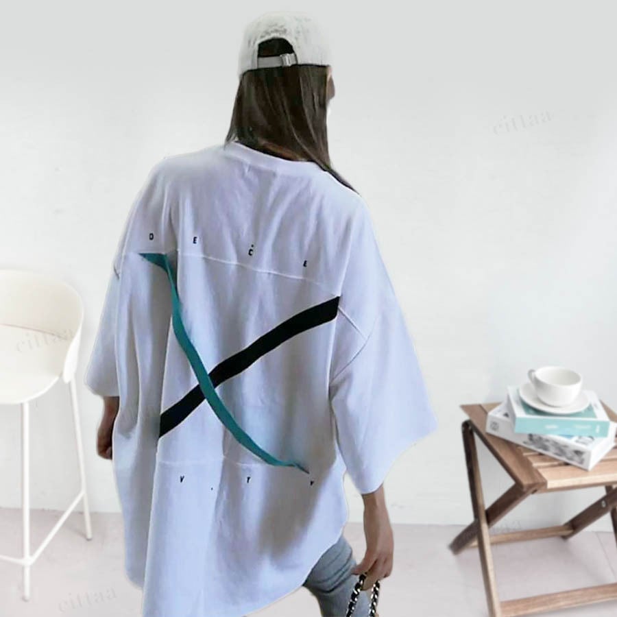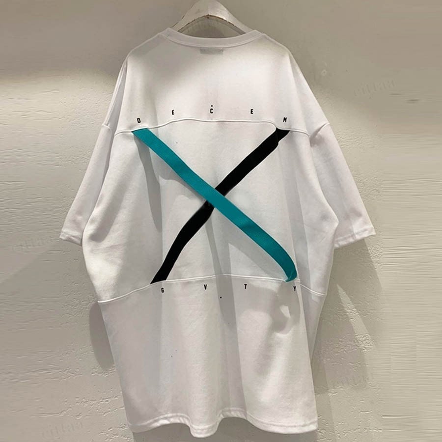 【即納】Y-4847 2026春新作♡DECEMクロステープデザイン半袖オーバーサイズTシャツ ホワイト 0320