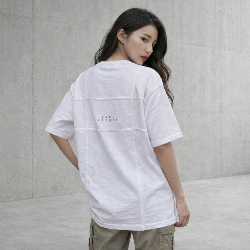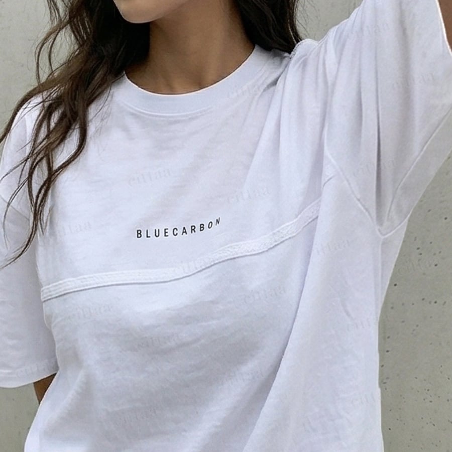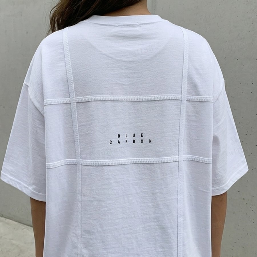 【即納】Y-4864 2026春新作♡BLUE CARBONテープデザイン半袖Tシャツ ホワイト 0327