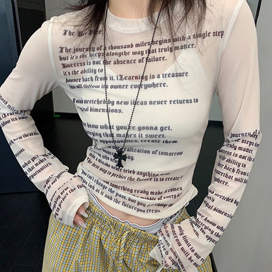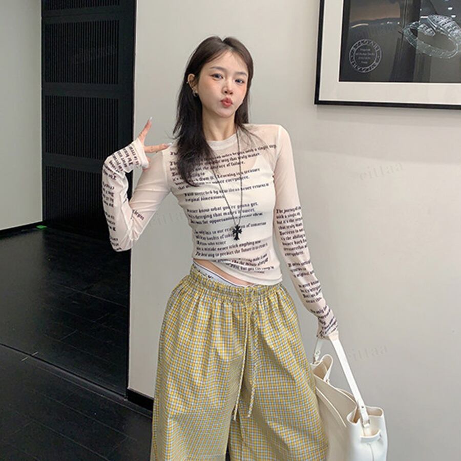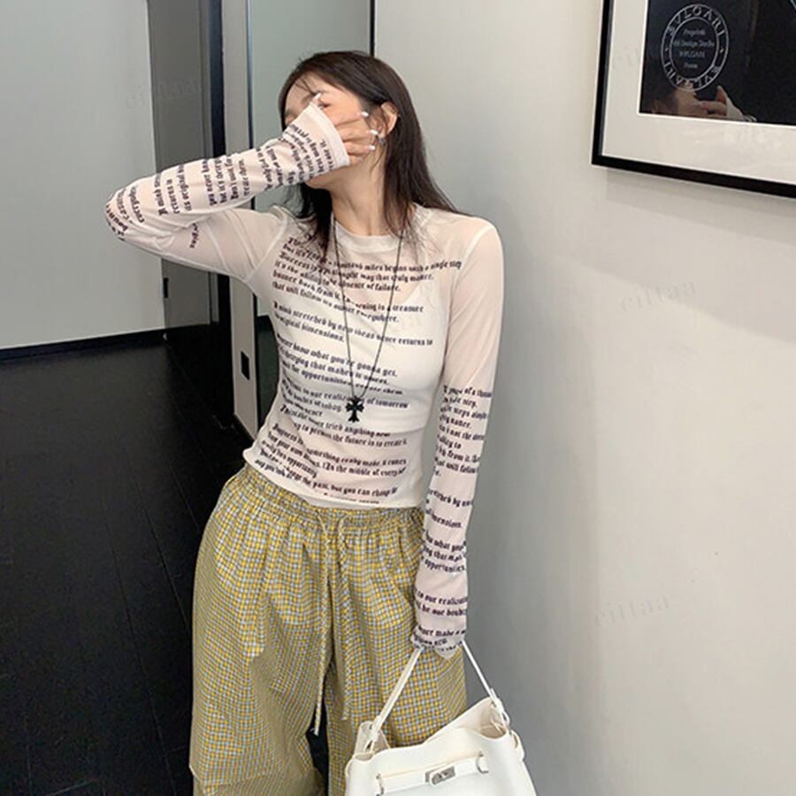 ★予約★D-1098 2026春新作♡Y2k英字プリントシアートップス ホワイト