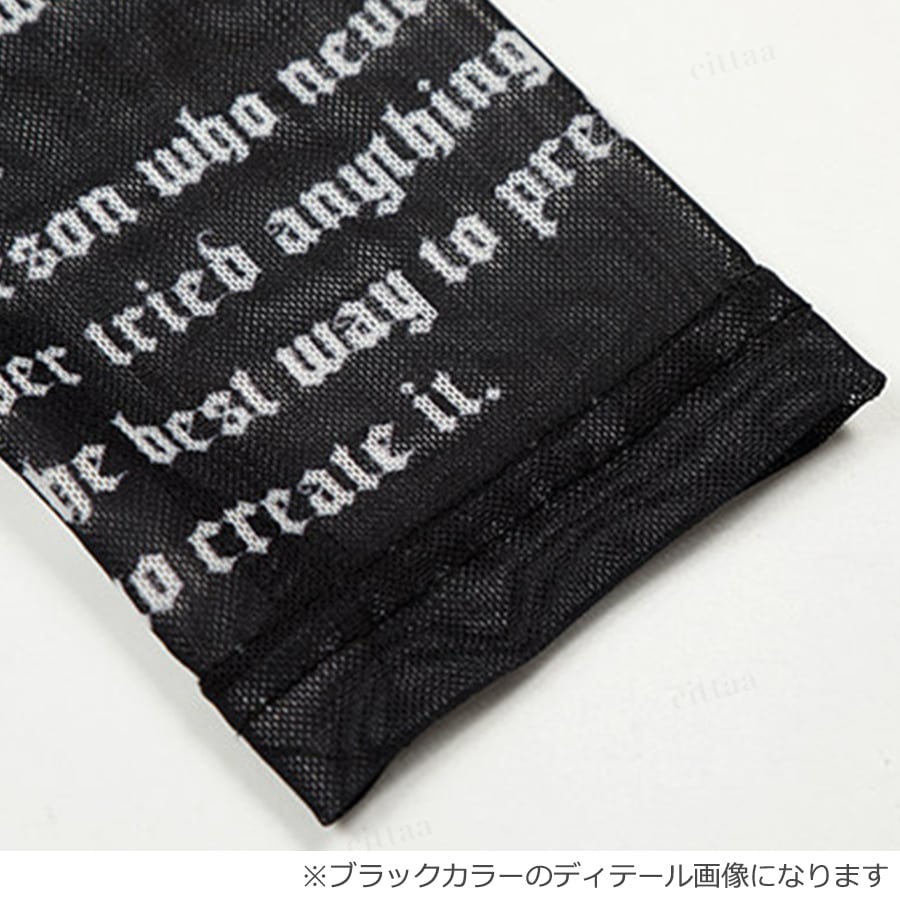 英字プリント×シアー素材で、一気に今っぽいスタイルが完成。程よい透け感が大人っぽく、辛口なロゴデザインがコーデにアクセントをプラス。フロント・バック・袖までデザインが入っているので、どの角度から見ても抜かりなく映える1枚です。