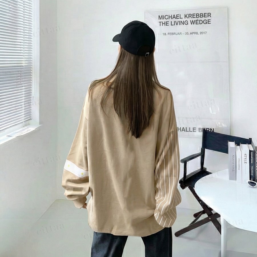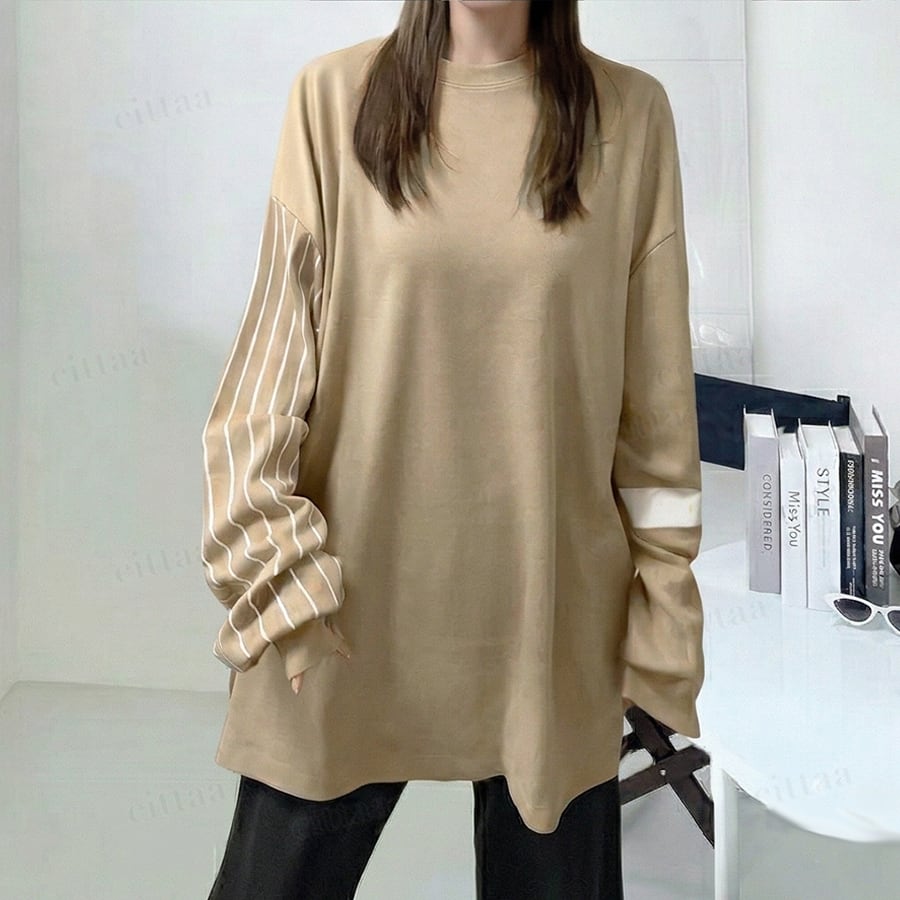 【即納】Y-4134 2026春夏新作♡袖ストライプ長袖Tシャツ ライトベージュ