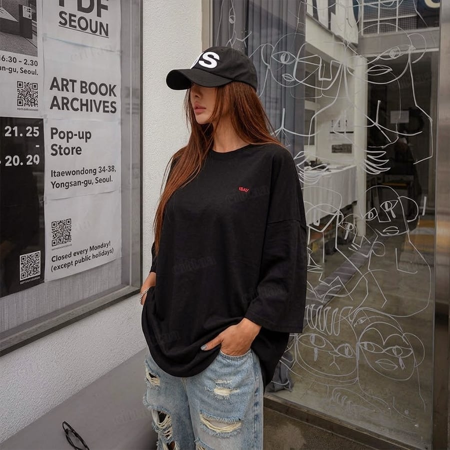 ゆるっとルーズなビッグシルエットで、ラフに着るだけで今っぽい印象に。ヒップが隠れる着丈で体型カバーも叶い、レギンス合わせでもバランス良く決まります。