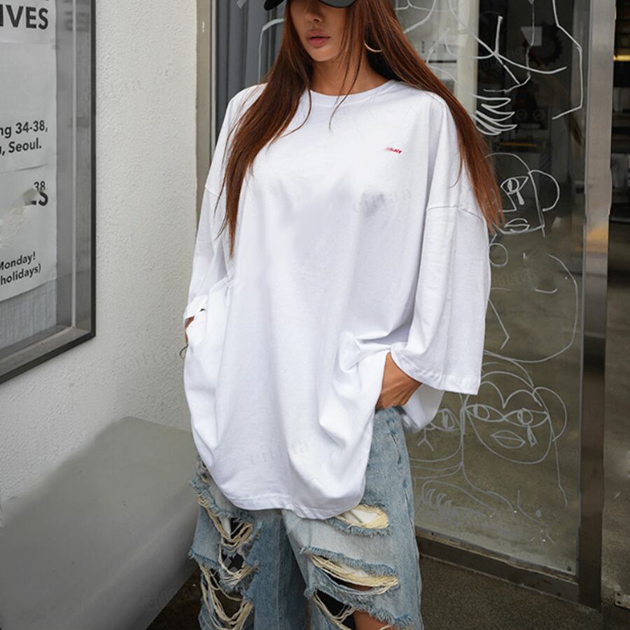 ゆるっとルーズなビッグシルエットで、ラフに着るだけで今っぽい印象に。ヒップが隠れる着丈で体型カバーも叶い、レギンス合わせでもバランス良く決まります。