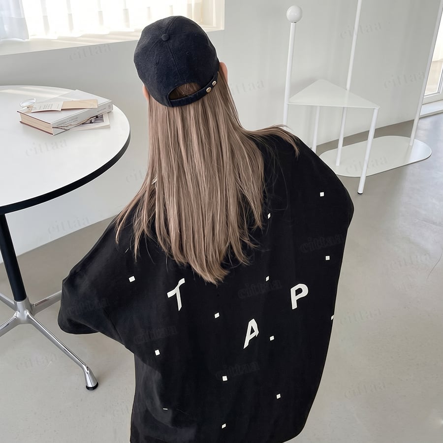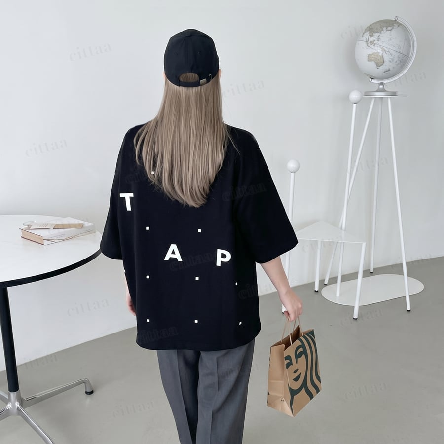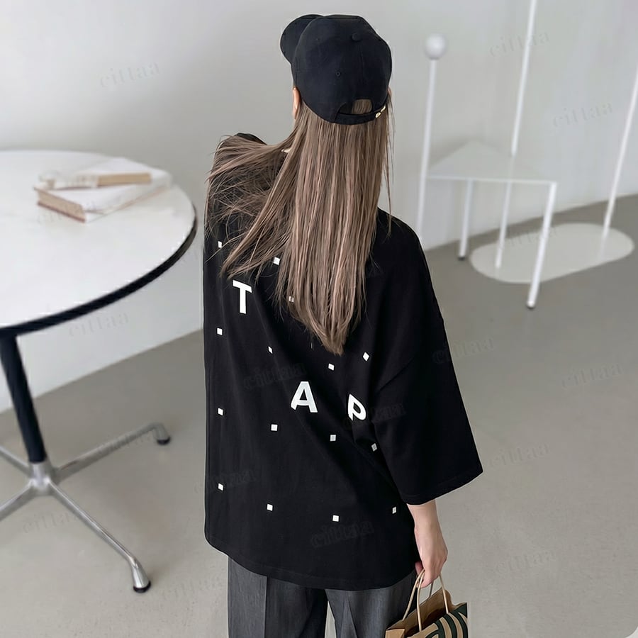 【即納】Y-4867 2026春新作♡TAPプリントドローストリング半袖Tシャツ ブラック 0403