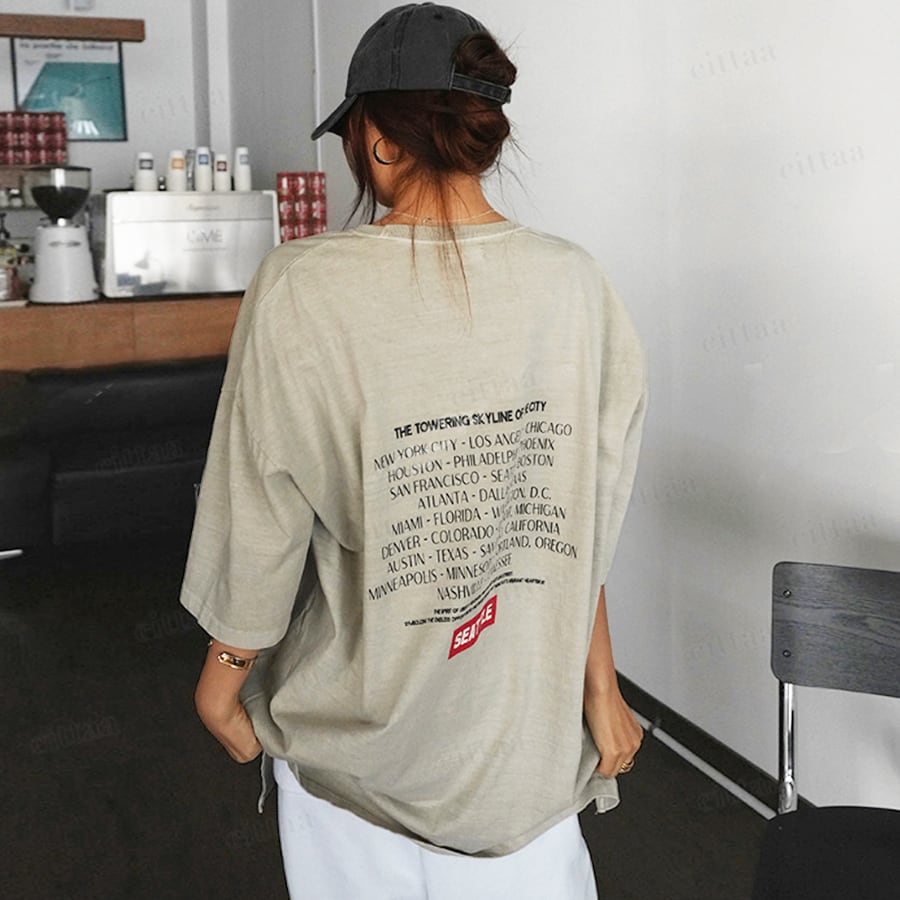 【予約】Y-4841 2026春新作♡SEATTLE英字バックプリント半袖Tシャツ ベージュ