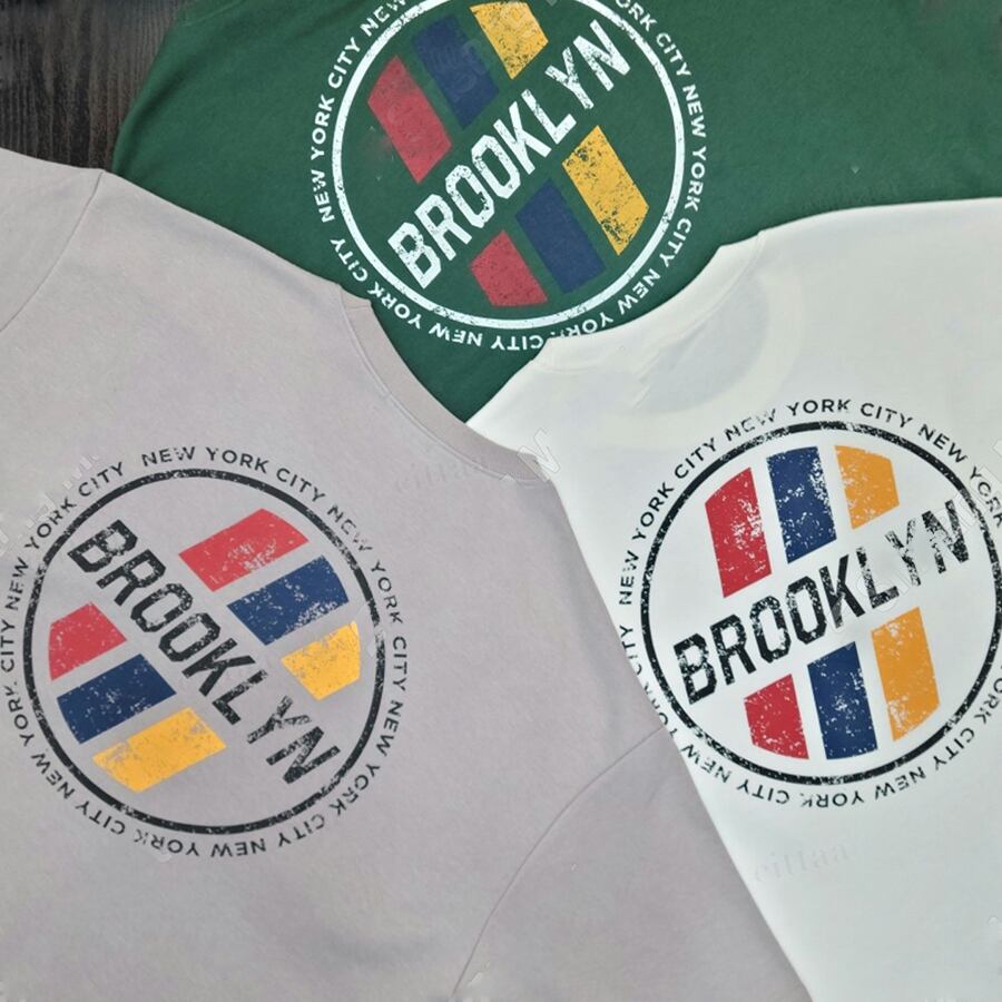 【予約】Y-4879 2026春新作♡BROOKLYNかすれプリント半袖Tシャツ グレー 0407