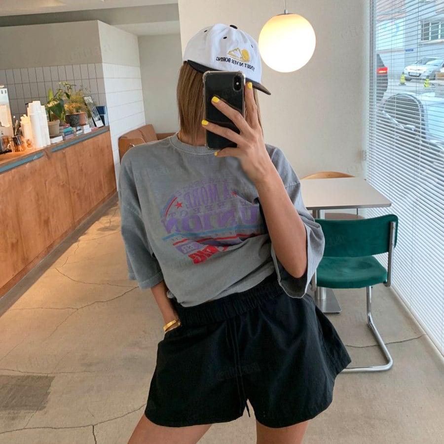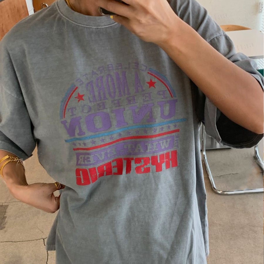 【即納】Y-4878 2026春新作♡UNIONプリントピグメント加工半袖Tシャツ グレー 0407